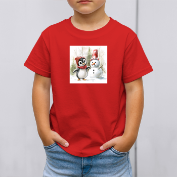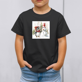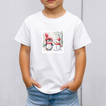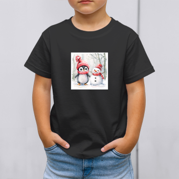 Vaikiški marškinėliai su spauda „Pingvinas ir sniego senis draugai“