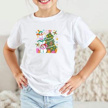 Vaikiški marškinėliai su spauda „Laputės ir sniego senio šypsenos“