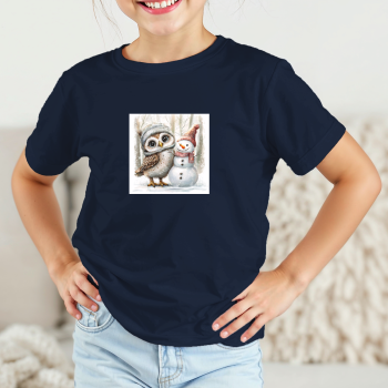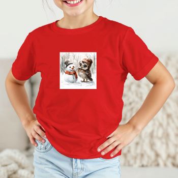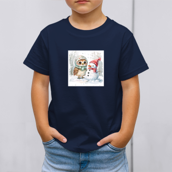 Vaikiški marškinėliai su spauda „Pelėdos ir sniego senio draugystė“
