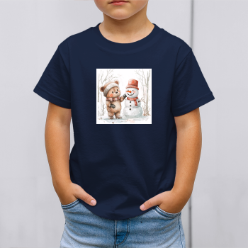 Vaikiški marškinėliai su spauda „Meškiukas ir sniego senis“