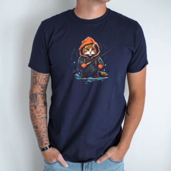 Unisex marškinėliai su spauda „Katinas žvejoja su apranga“