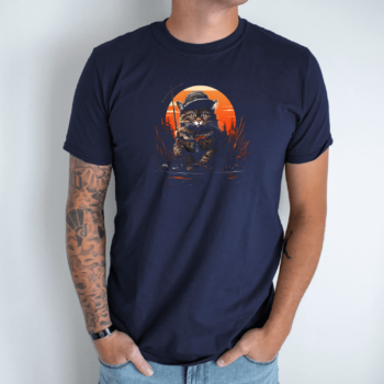 Unisex marškinėliai su spauda „Katinas žvejoja prie vandens“