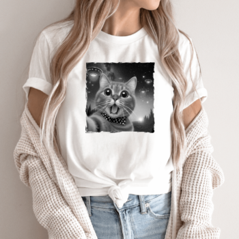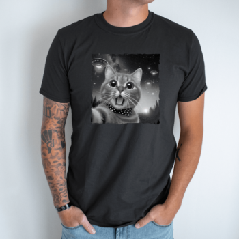 Unisex marškinėliai su spauda „Katinas žvejoja tamsoje“
