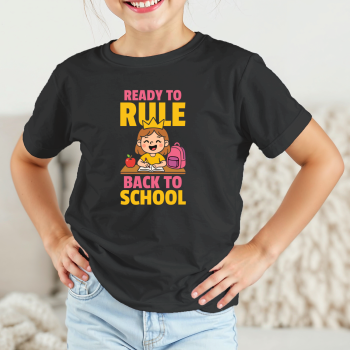 Vaikiški marškinėliai su spauda „Pasiruošusi valdyti mokyklą“