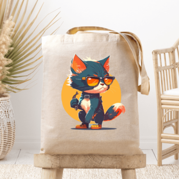 Medžiaginis maišelis su spauda „Katinas su akiniais“