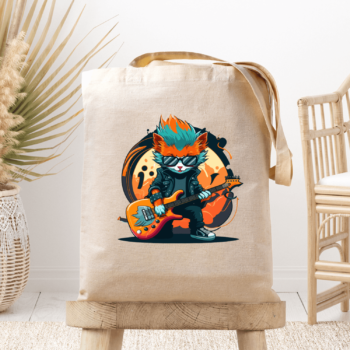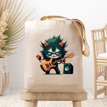 Medžiaginis maišelis su spauda „Katinas su gitara“