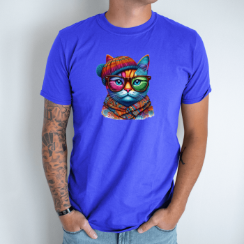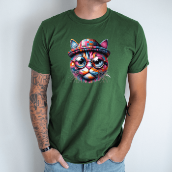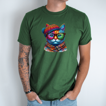 Unisex marškinėliai su spauda „Katinas hipsteris“