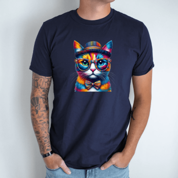 Unisex marškinėliai su spauda „Spalvotas katinas“