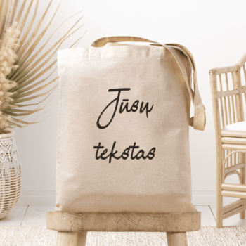 Medžiaginis maišelis su spauda „Jūsų tekstas“