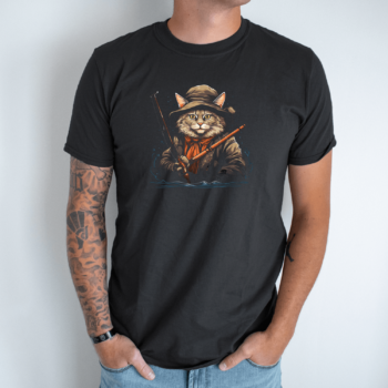 Unisex marškinėliai su spauda „Katinas žvejoja spiningu“