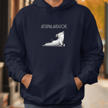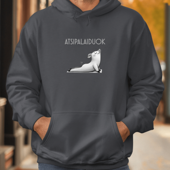 Unisex džemperis su spauda „Atsipalaidavęs tinginys“