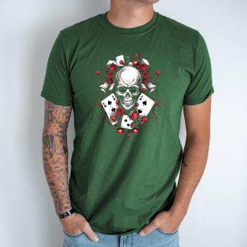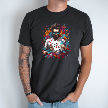 Unisex marškinėliai su spauda „Pokeris tarp rožiu“