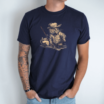 Unisex marškinėliai su spauda „Katinas žvejoja uoloje“