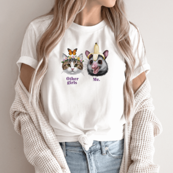 Unisex marškinėliai su spauda „Santykiuose su burgeriu“