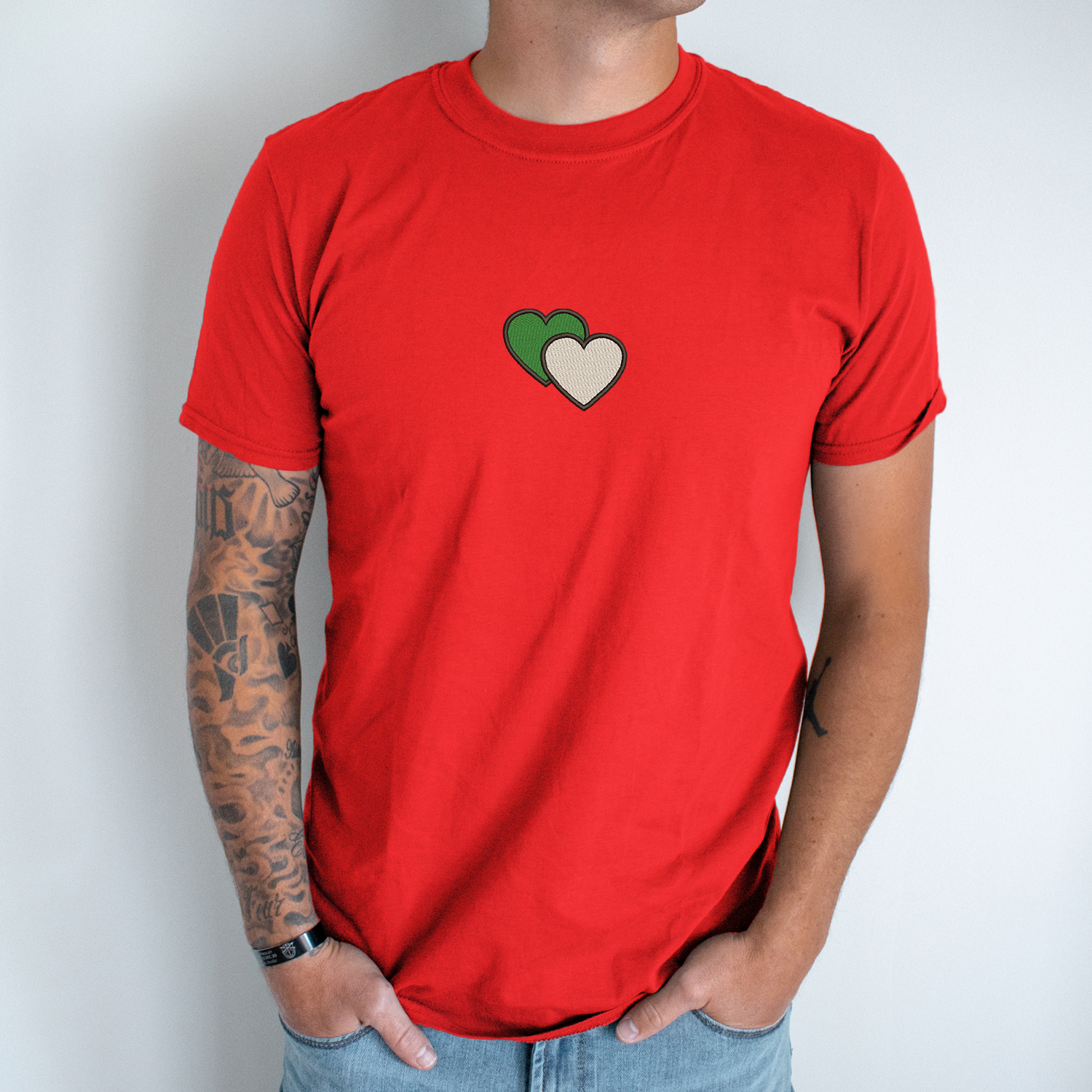 Siuvinėti unisex marškinėliai „Viena komanda, viena širdis“