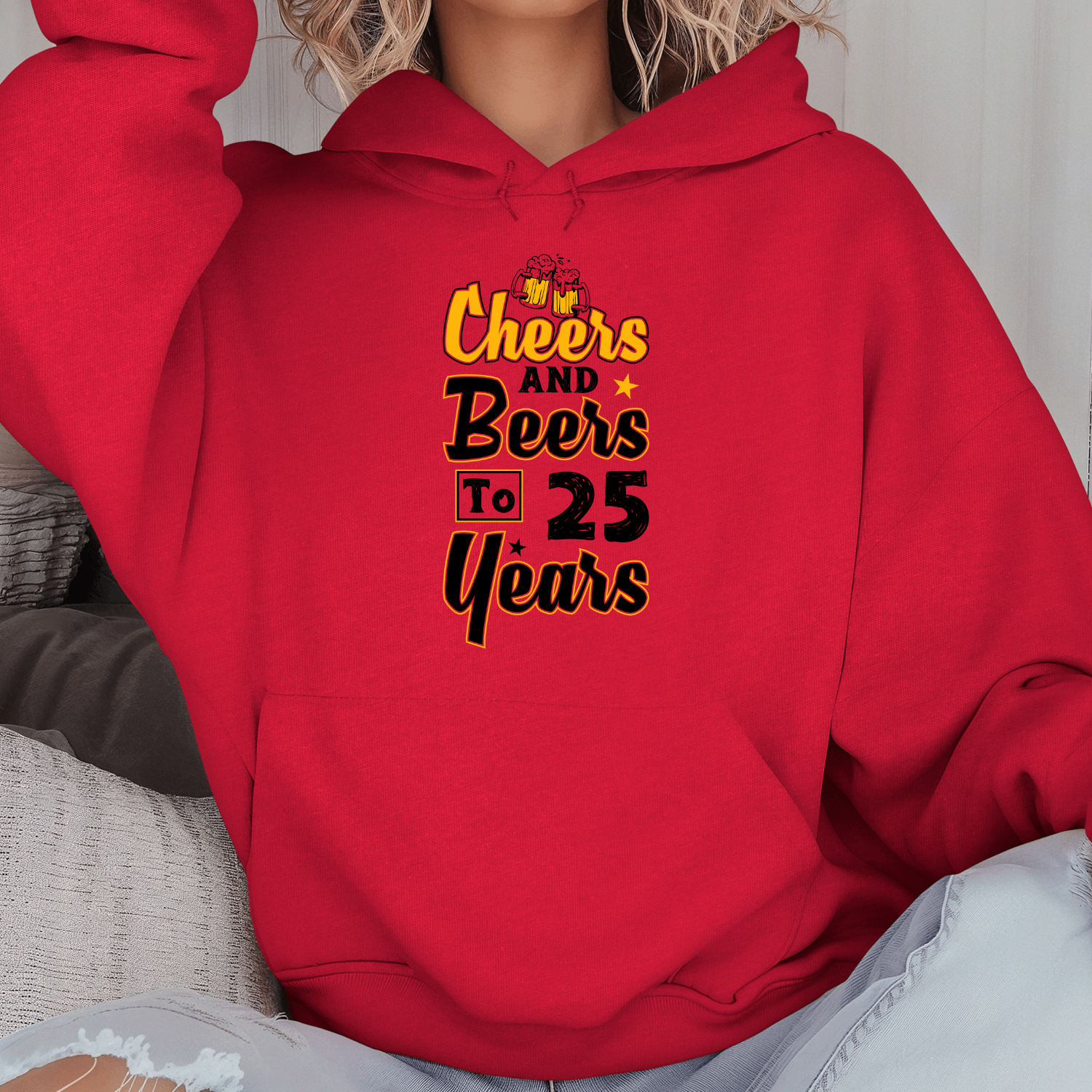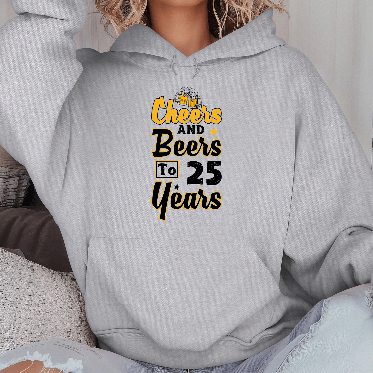 Unisex džemperis su spauda „Cheers to 25 Years“