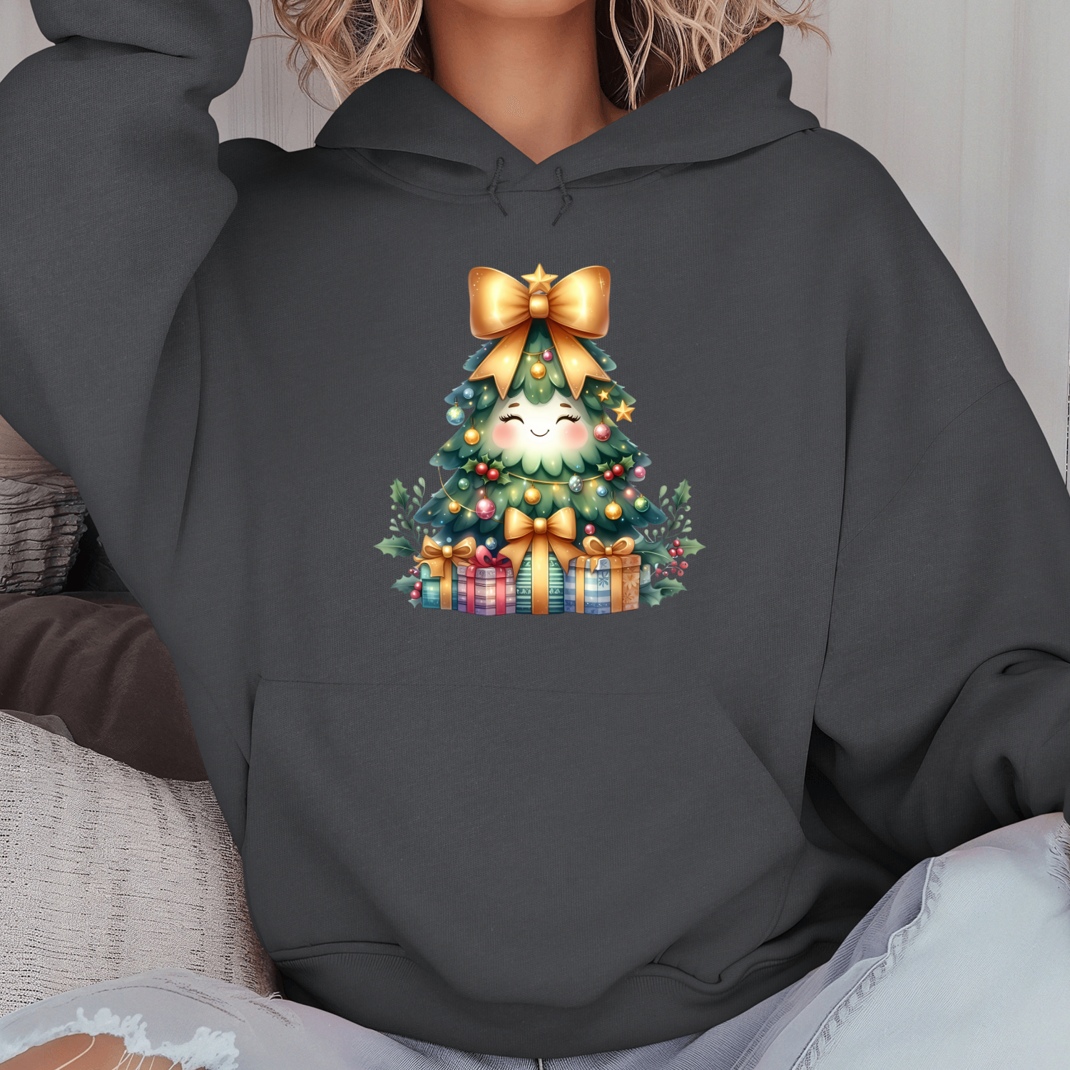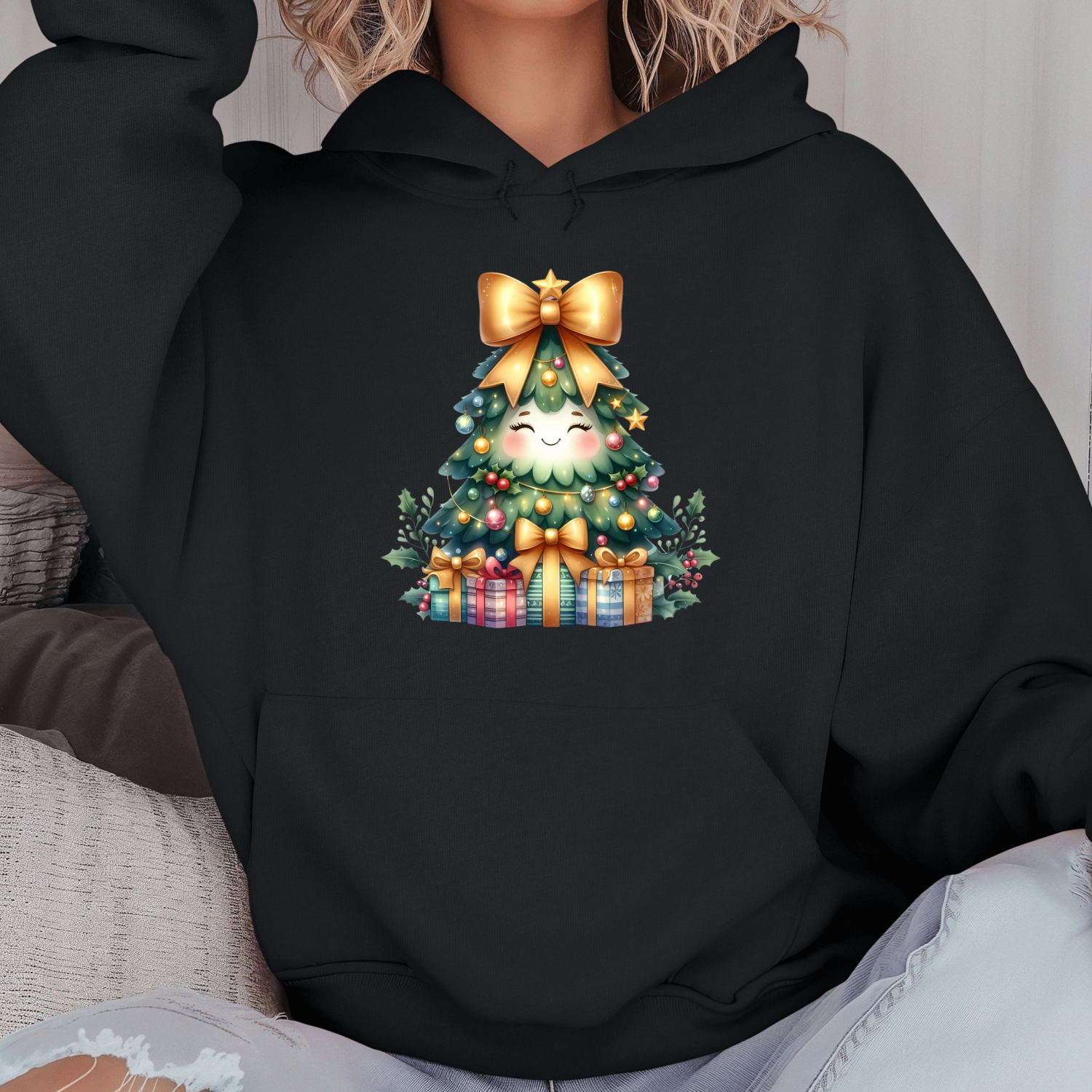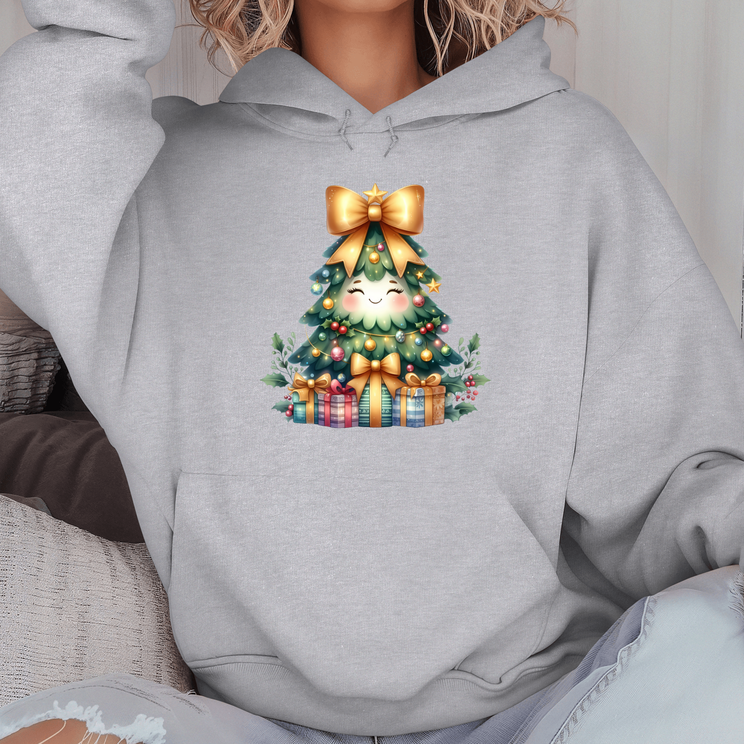 Būkite pirmas aprašęs “Unisex džemperis su spauda „Eglutė Staigmenėlė“”