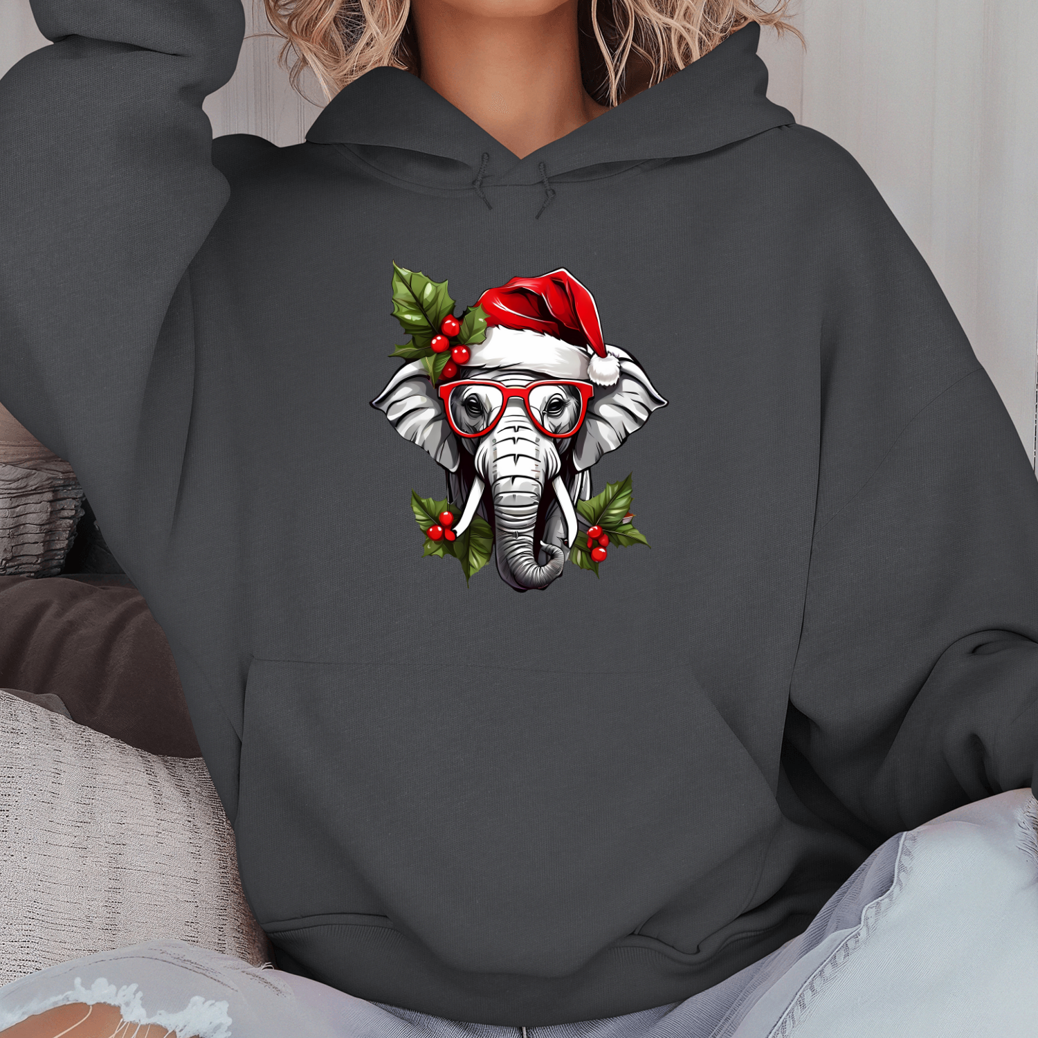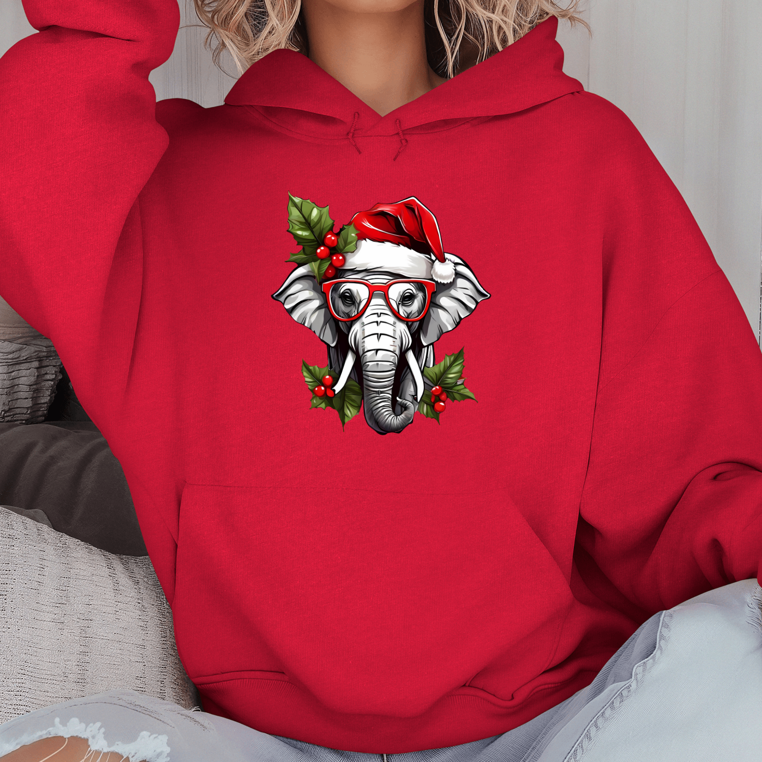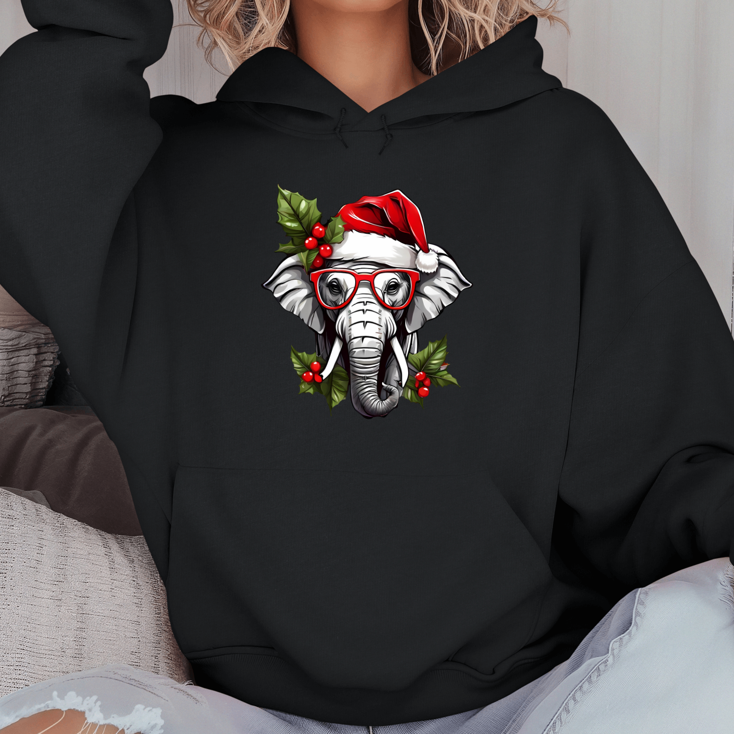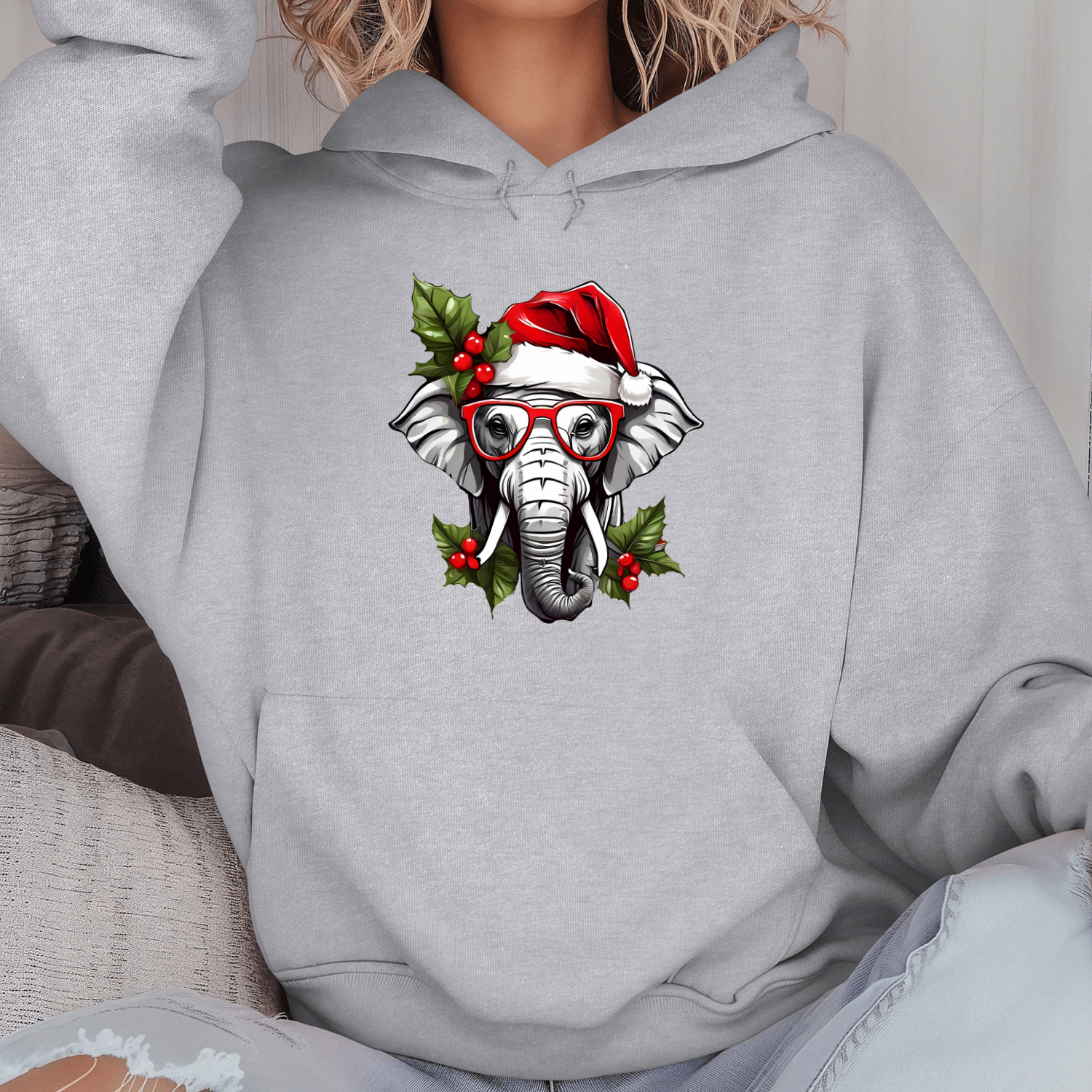 Būkite pirmas aprašęs “Unisex džemperis su spauda „Kalėdų dramblys“”