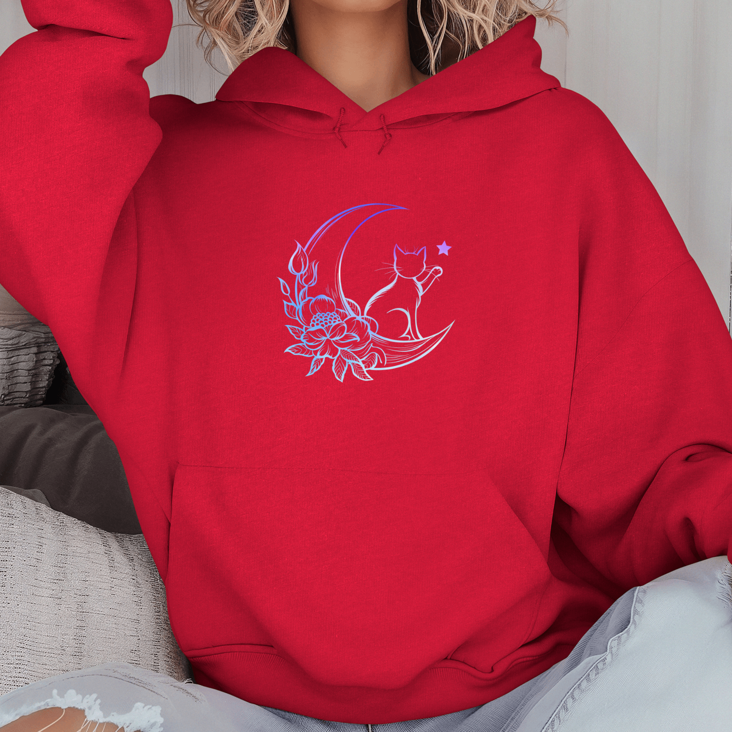Būkite pirmas aprašęs “Unisex džemperis su spauda „Katė mėnulyje“”