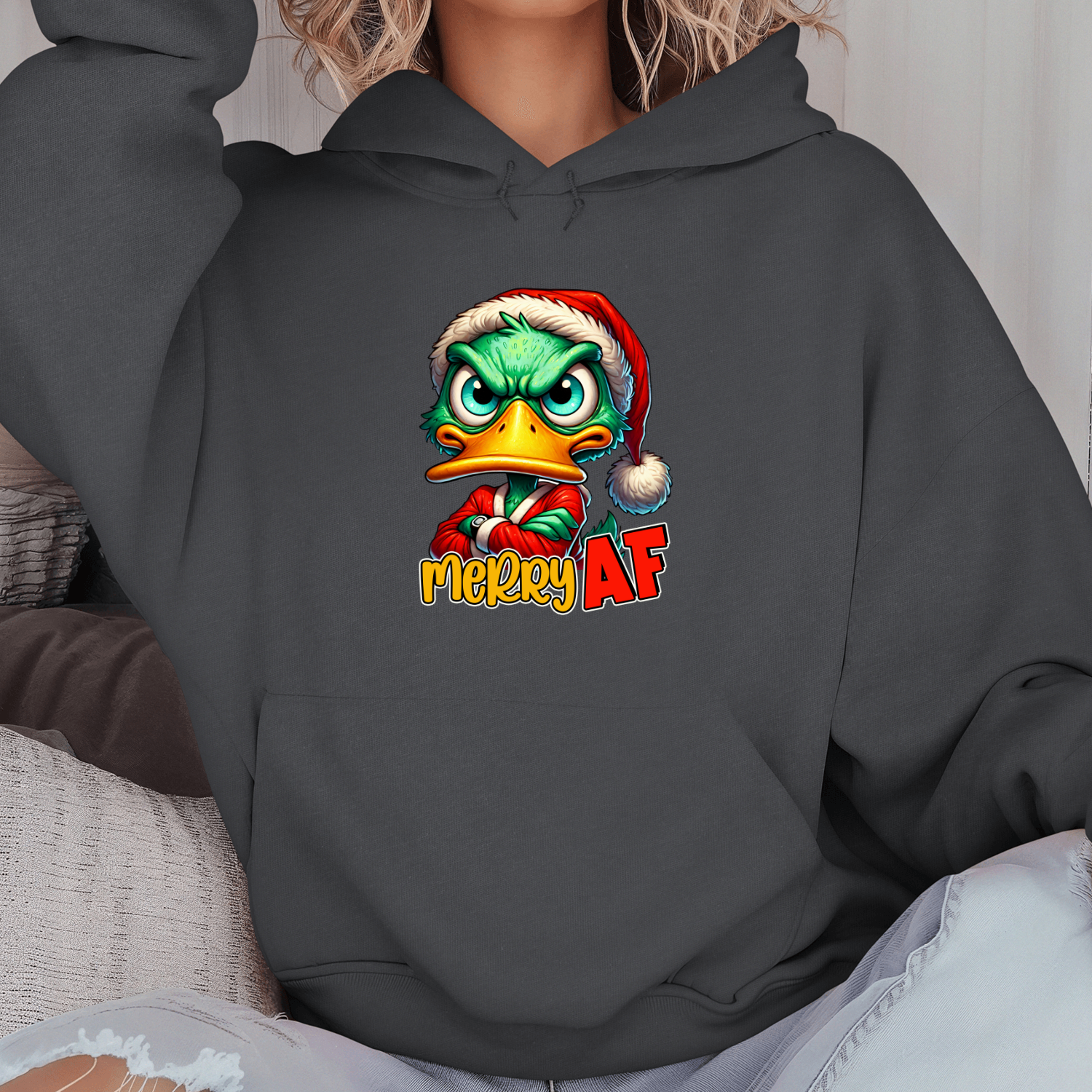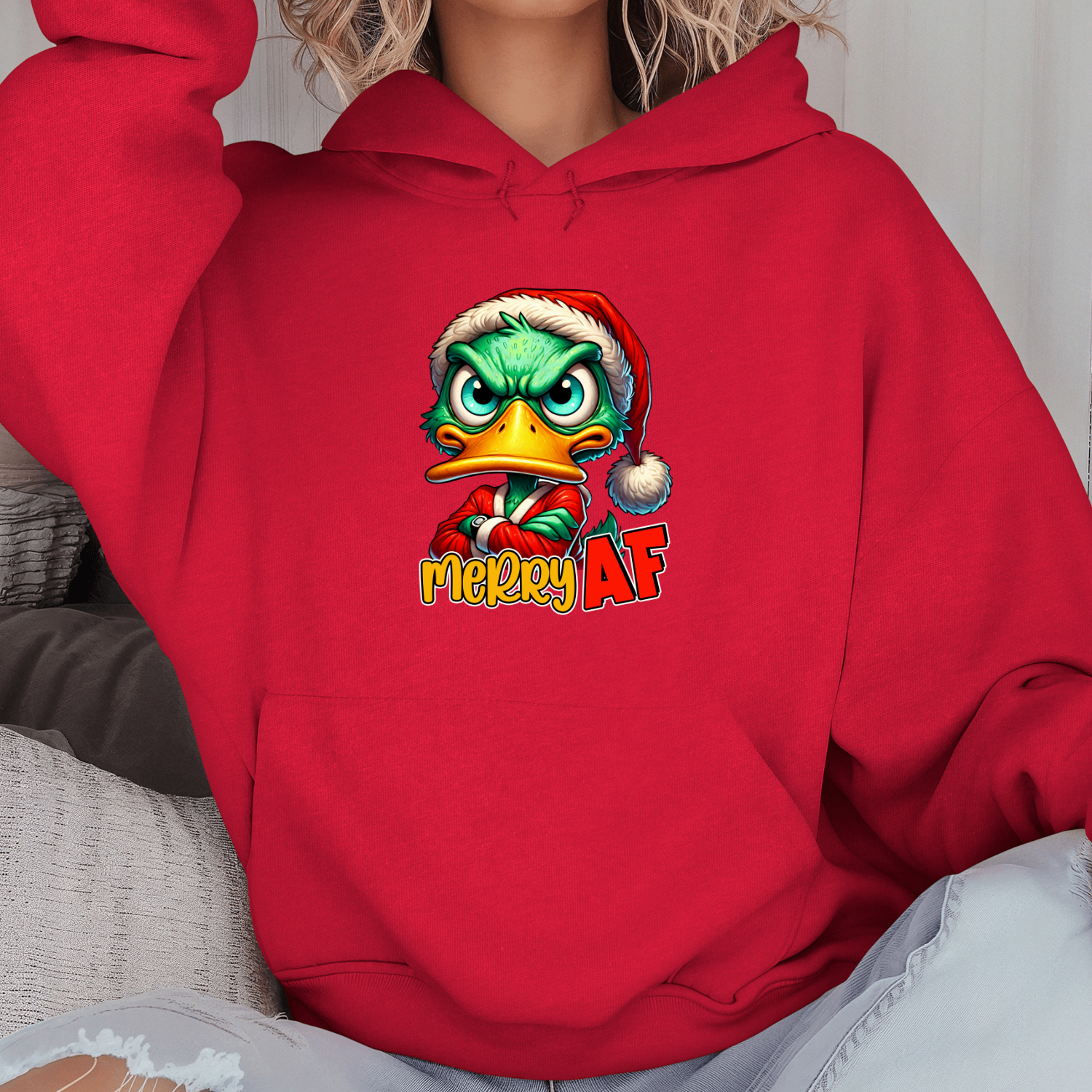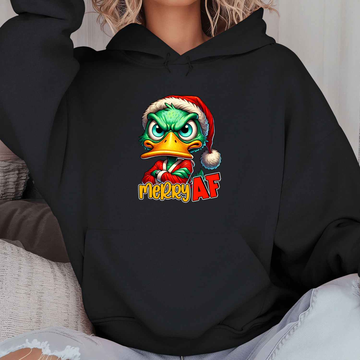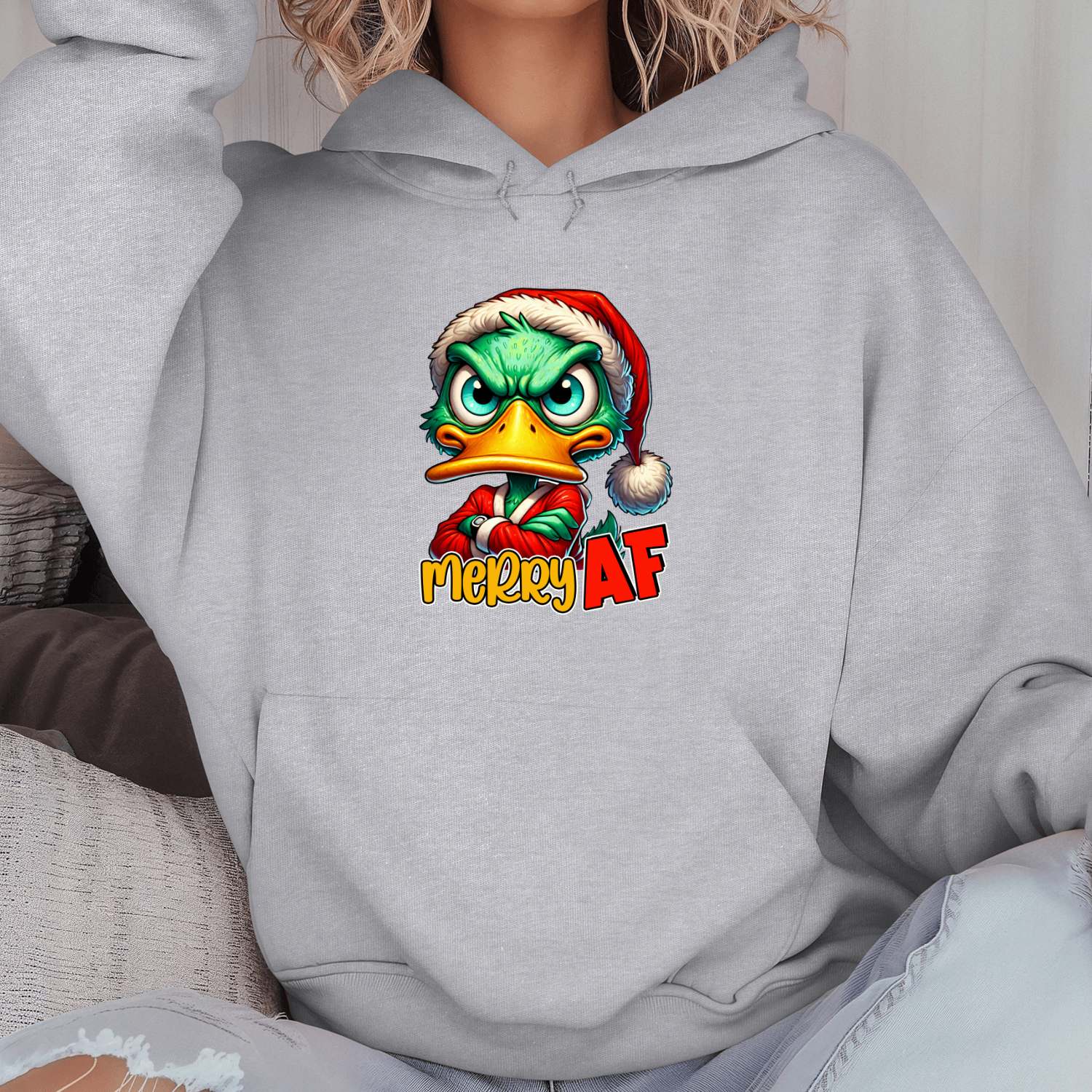 Unisex džemperis su spauda „Merry AF mood“
