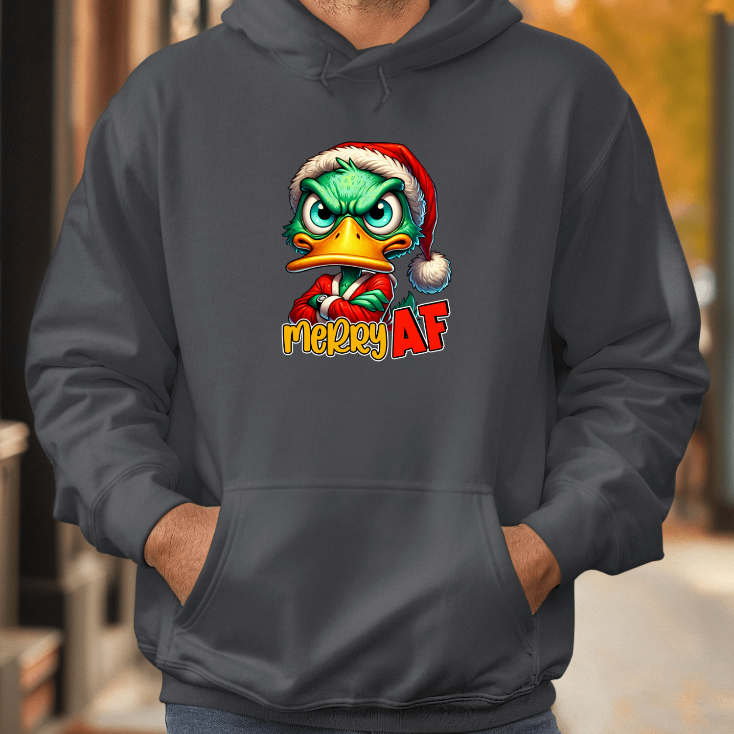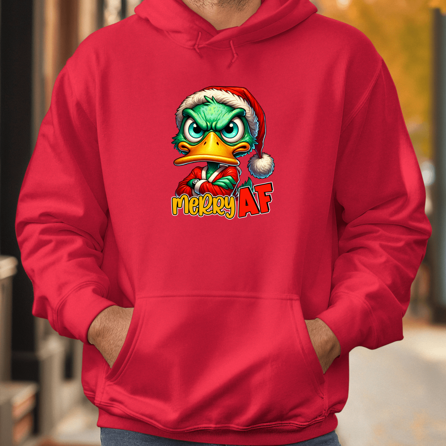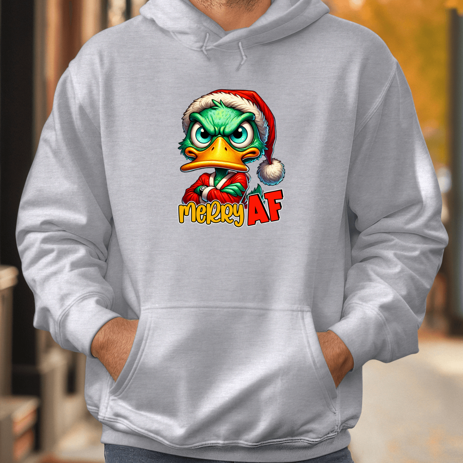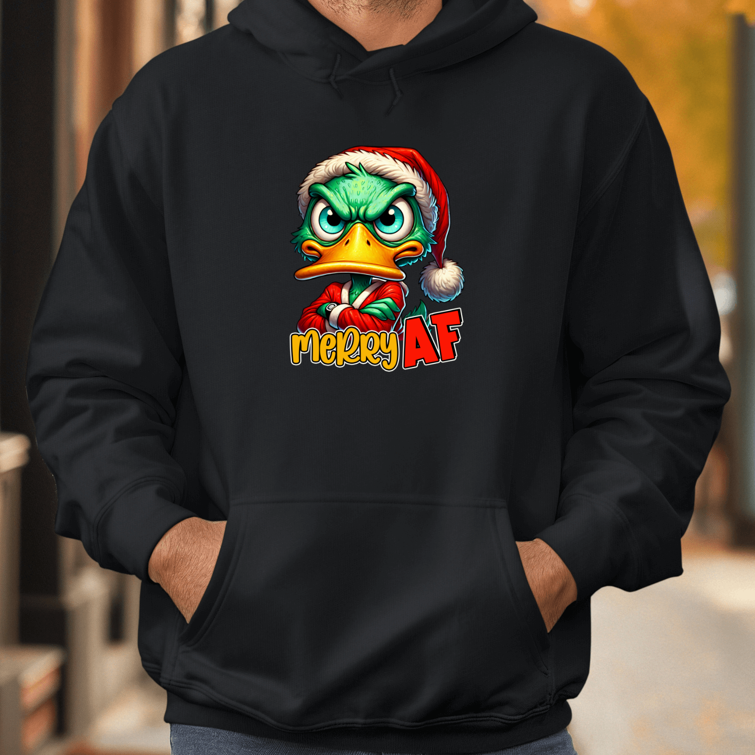 Unisex džemperis su spauda „Merry AF mood“