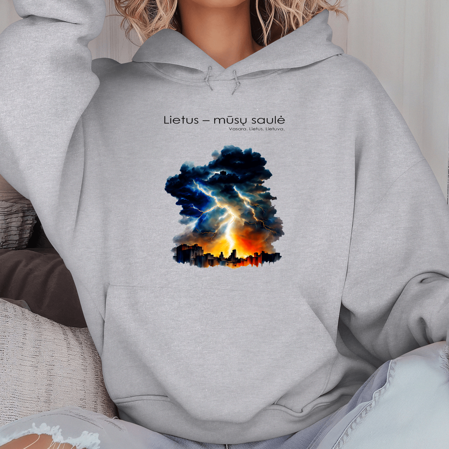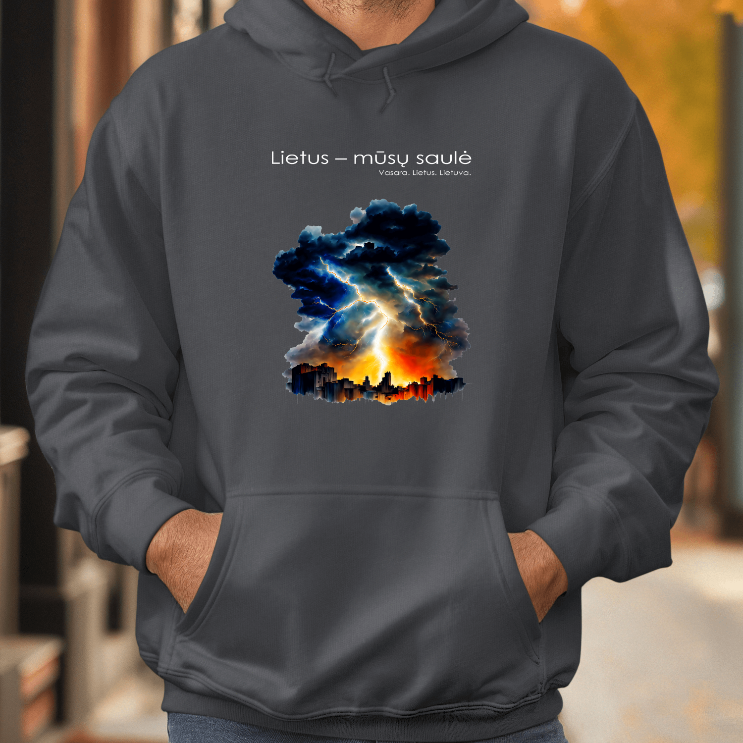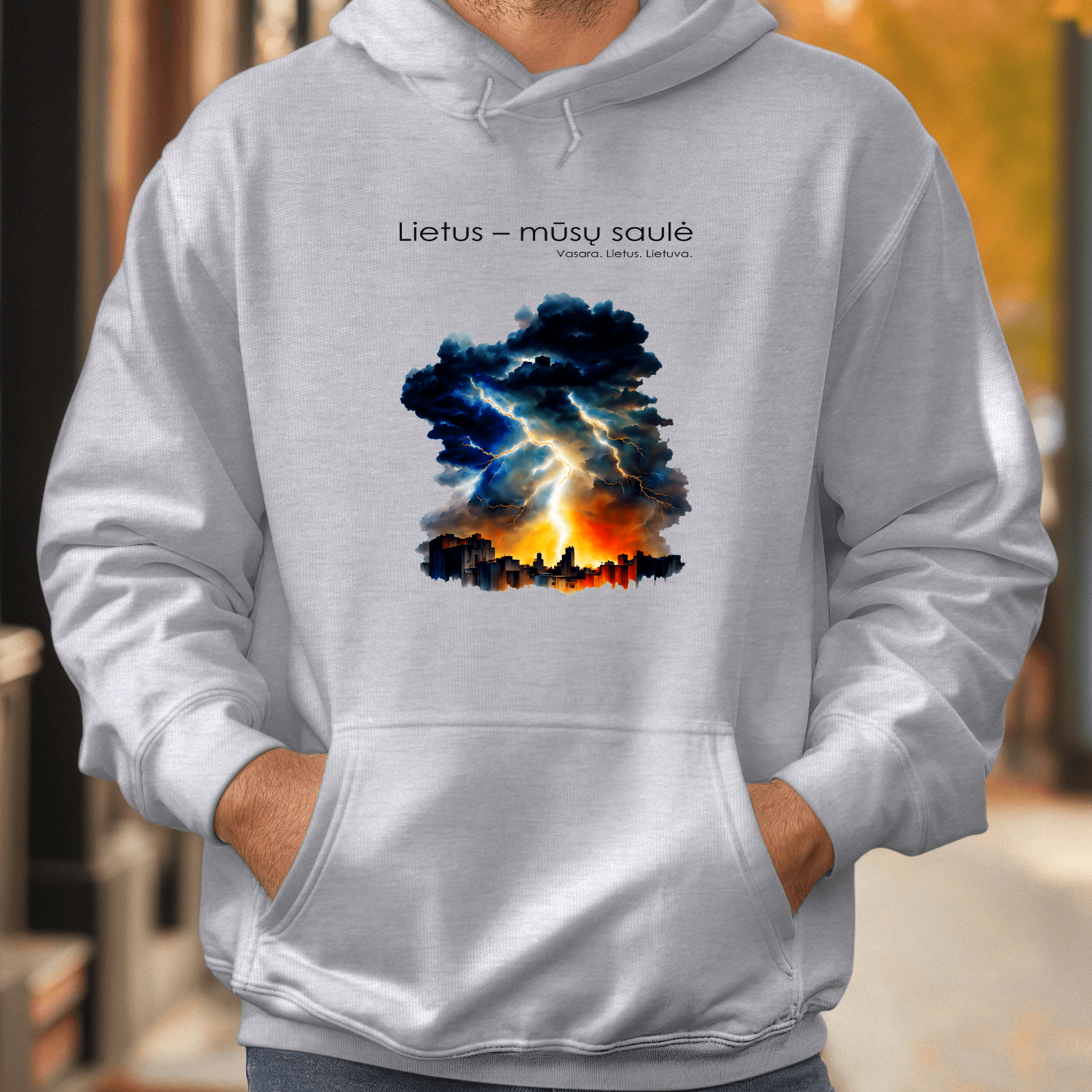 Būkite pirmas aprašęs “Unisex džemperis su spauda „Miesto perkūnija“”