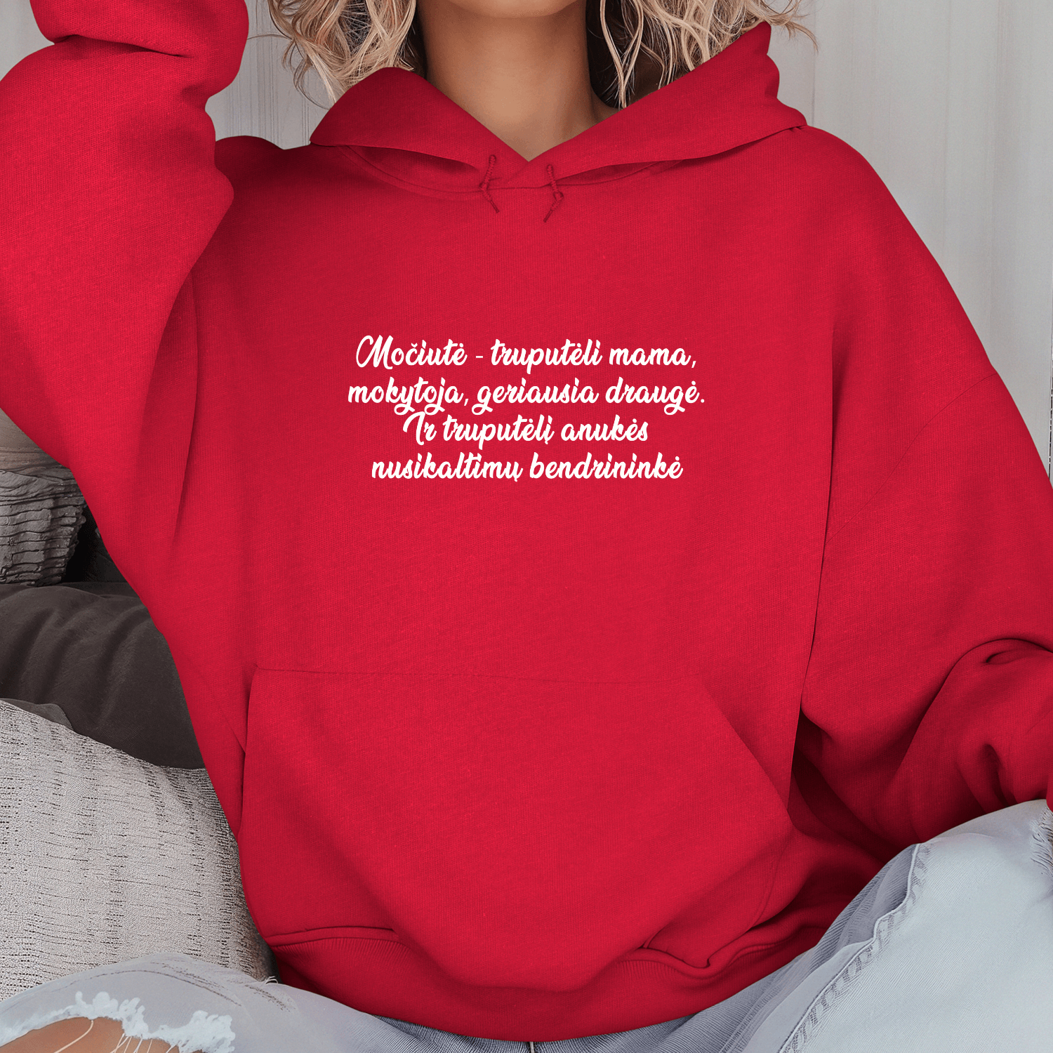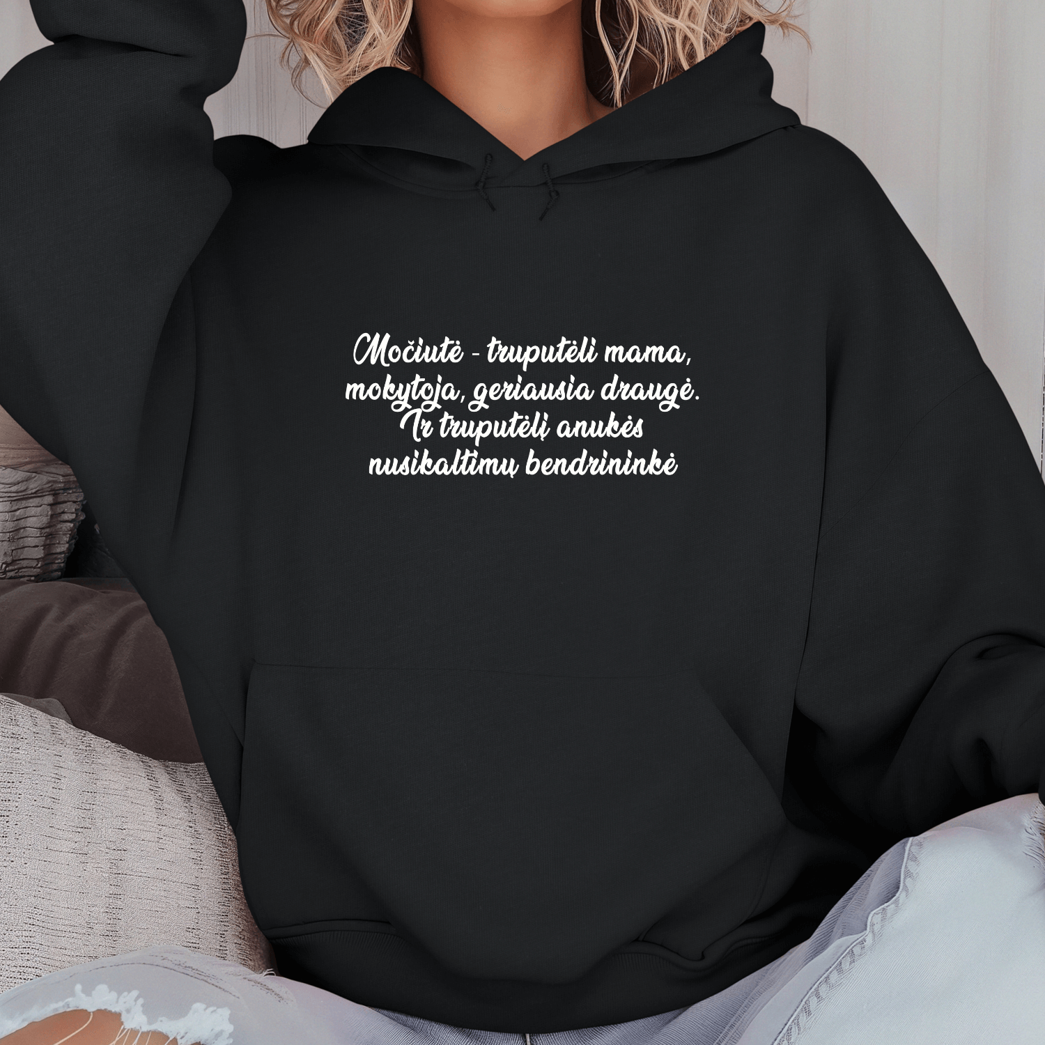 Unisex džemperis su spauda „Močiutė – nusikaltimų bendrininkė“