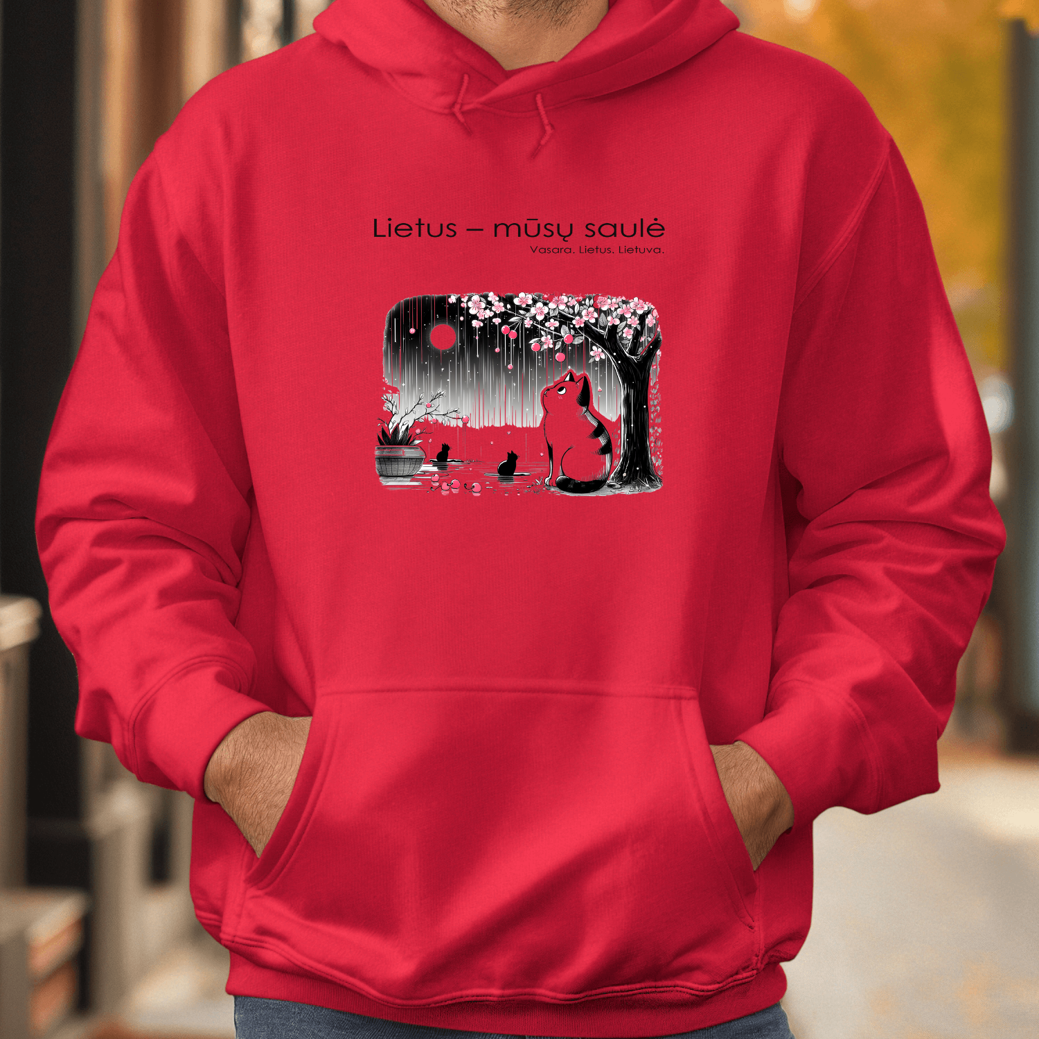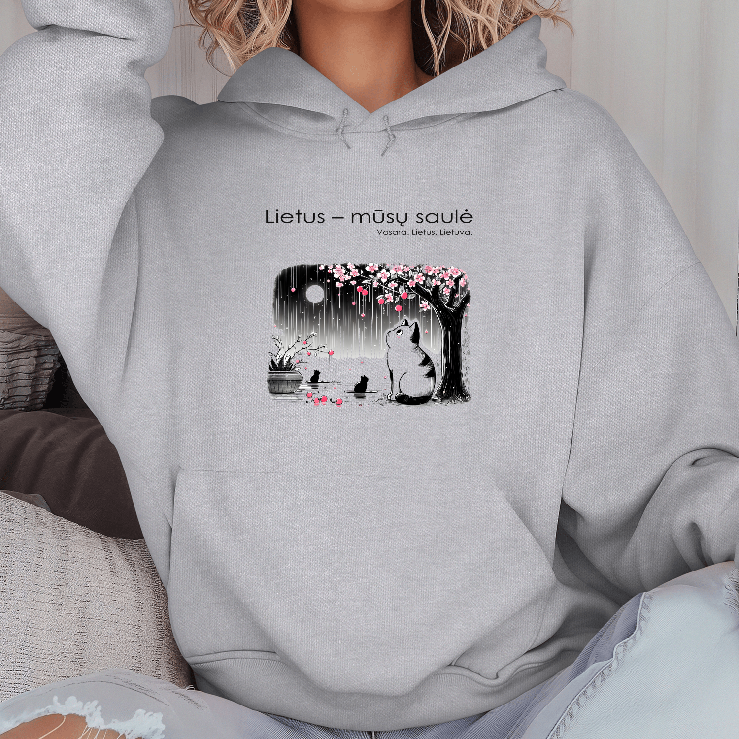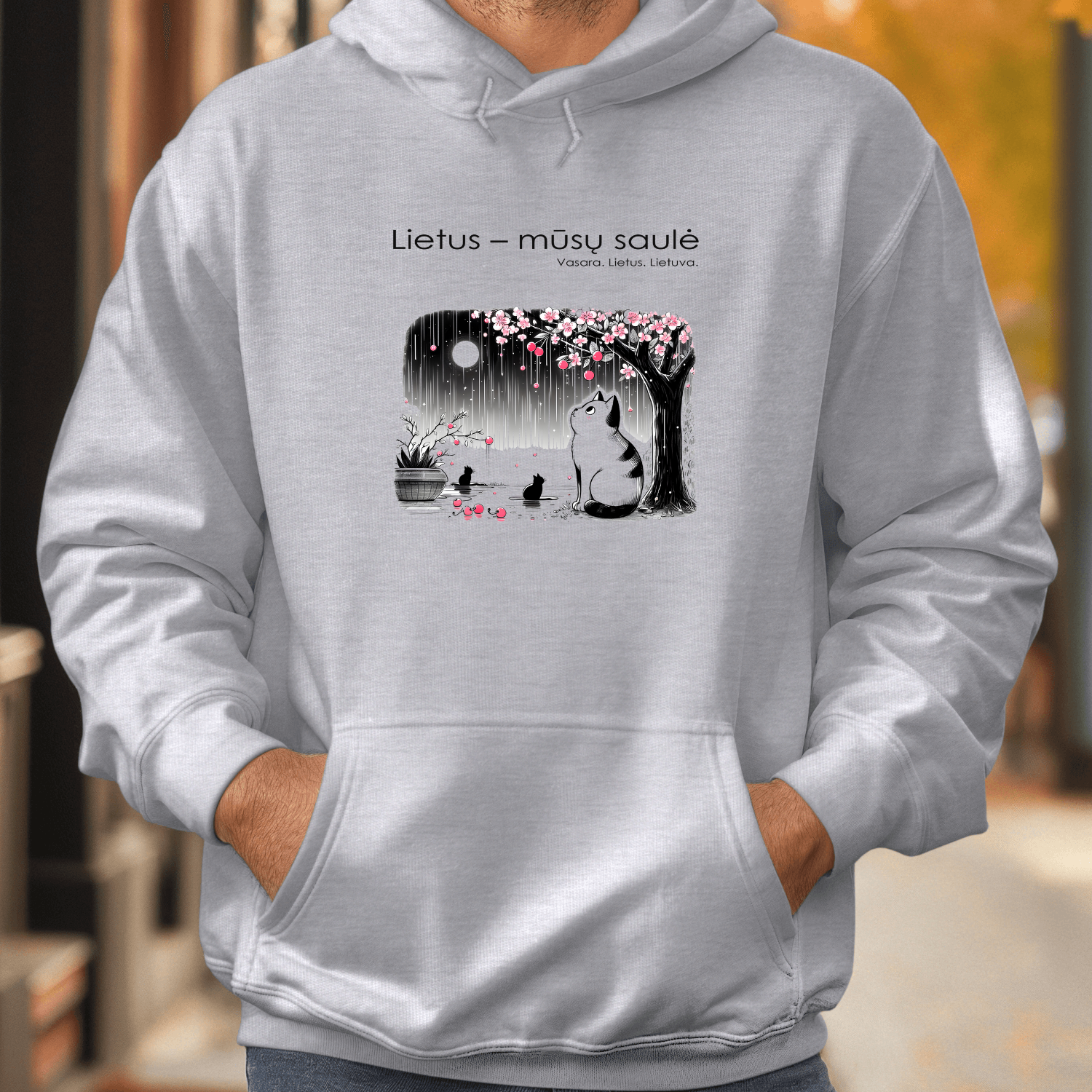 Būkite pirmas aprašęs “Unisex džemperis su spauda „Murkimas per lietų“”