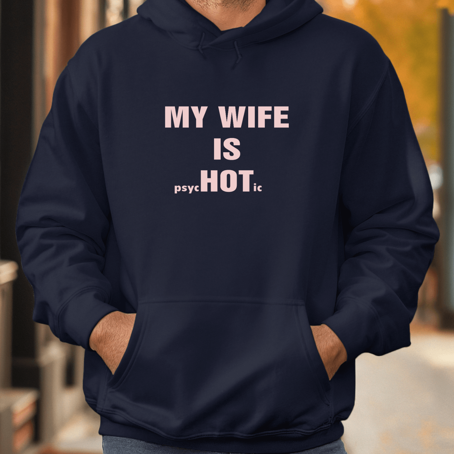 Unisex džemperis su spauda „My wife is psiHOTic“