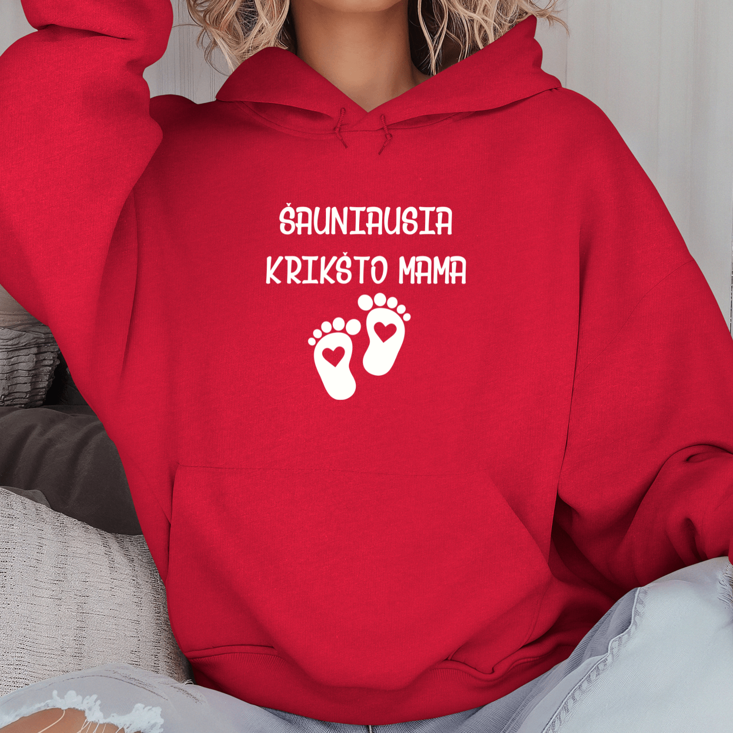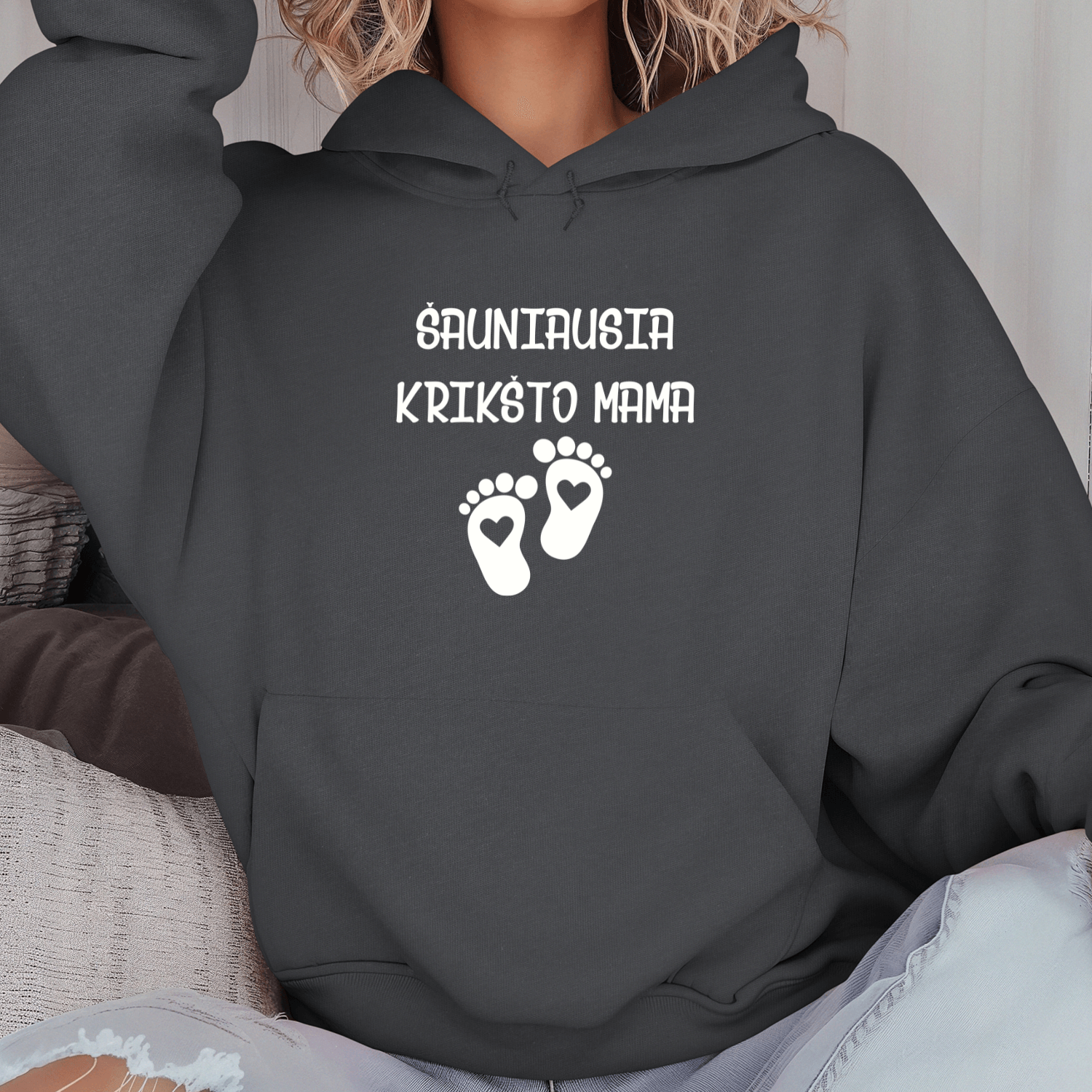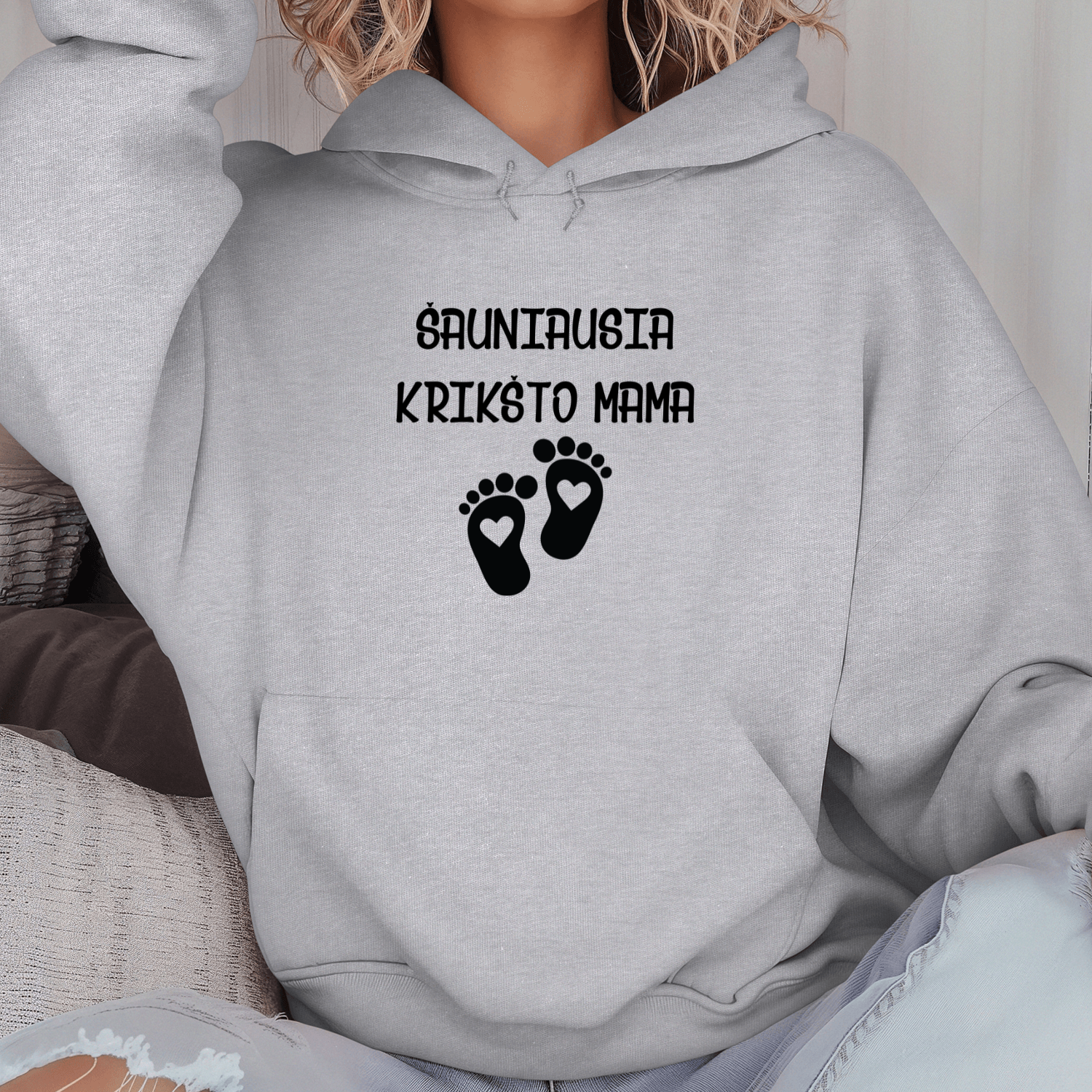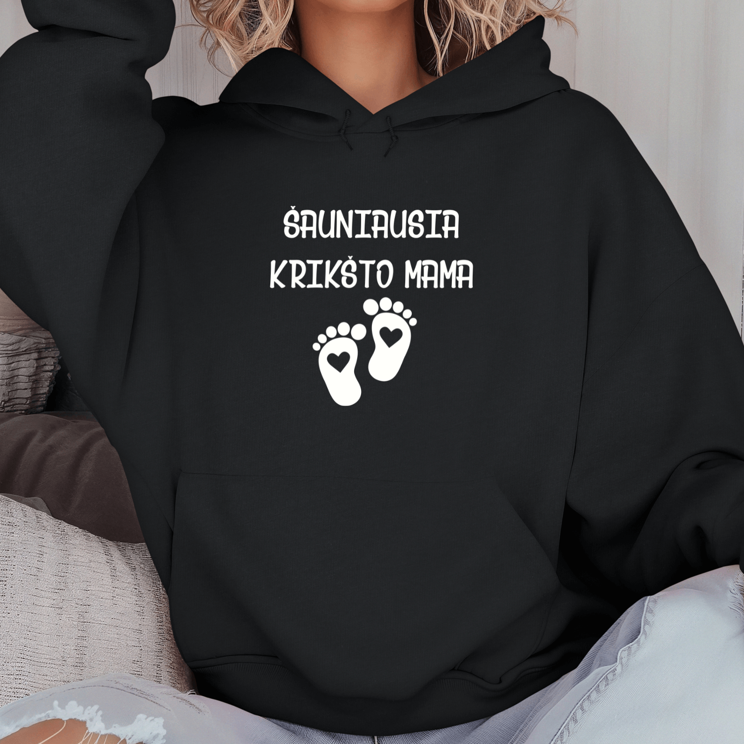 Unisex džemperis su spauda „Šauniausia Krikšto mama“