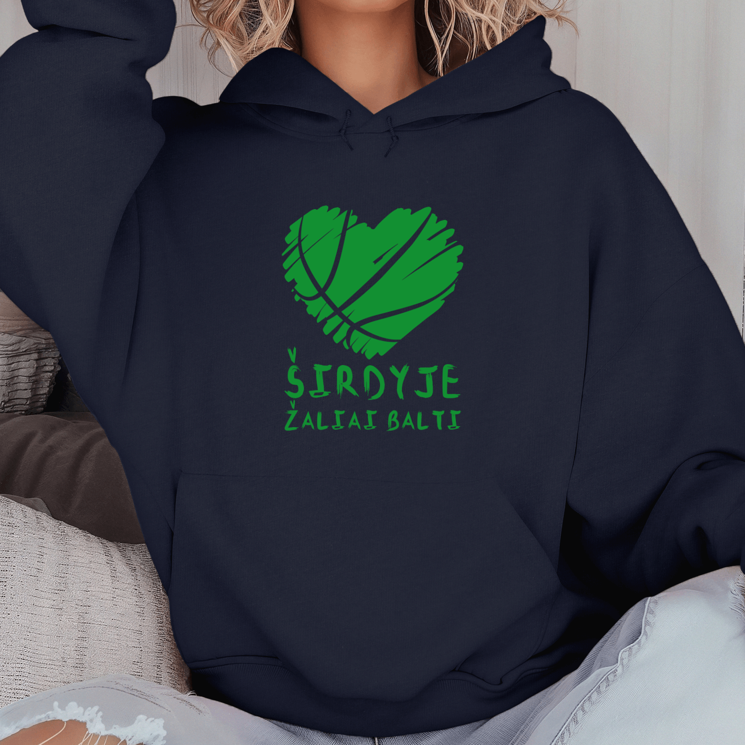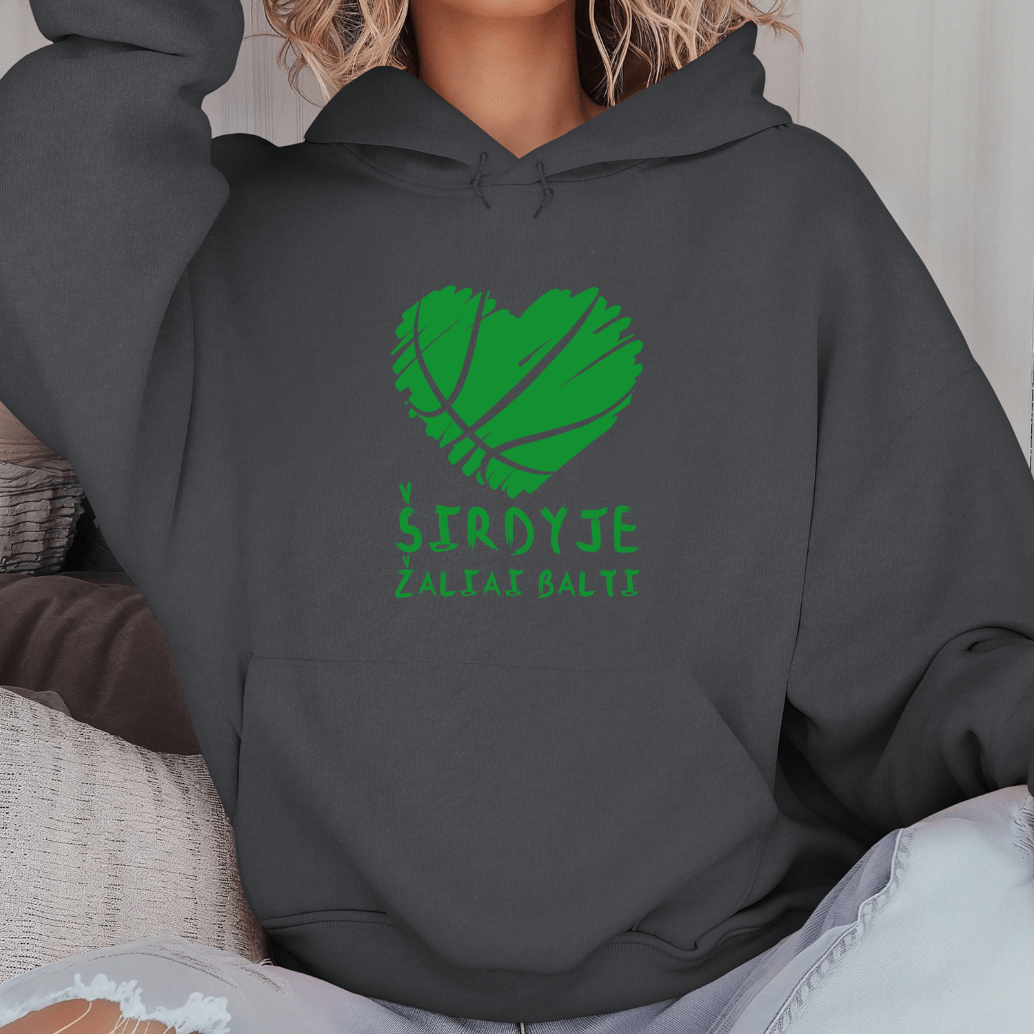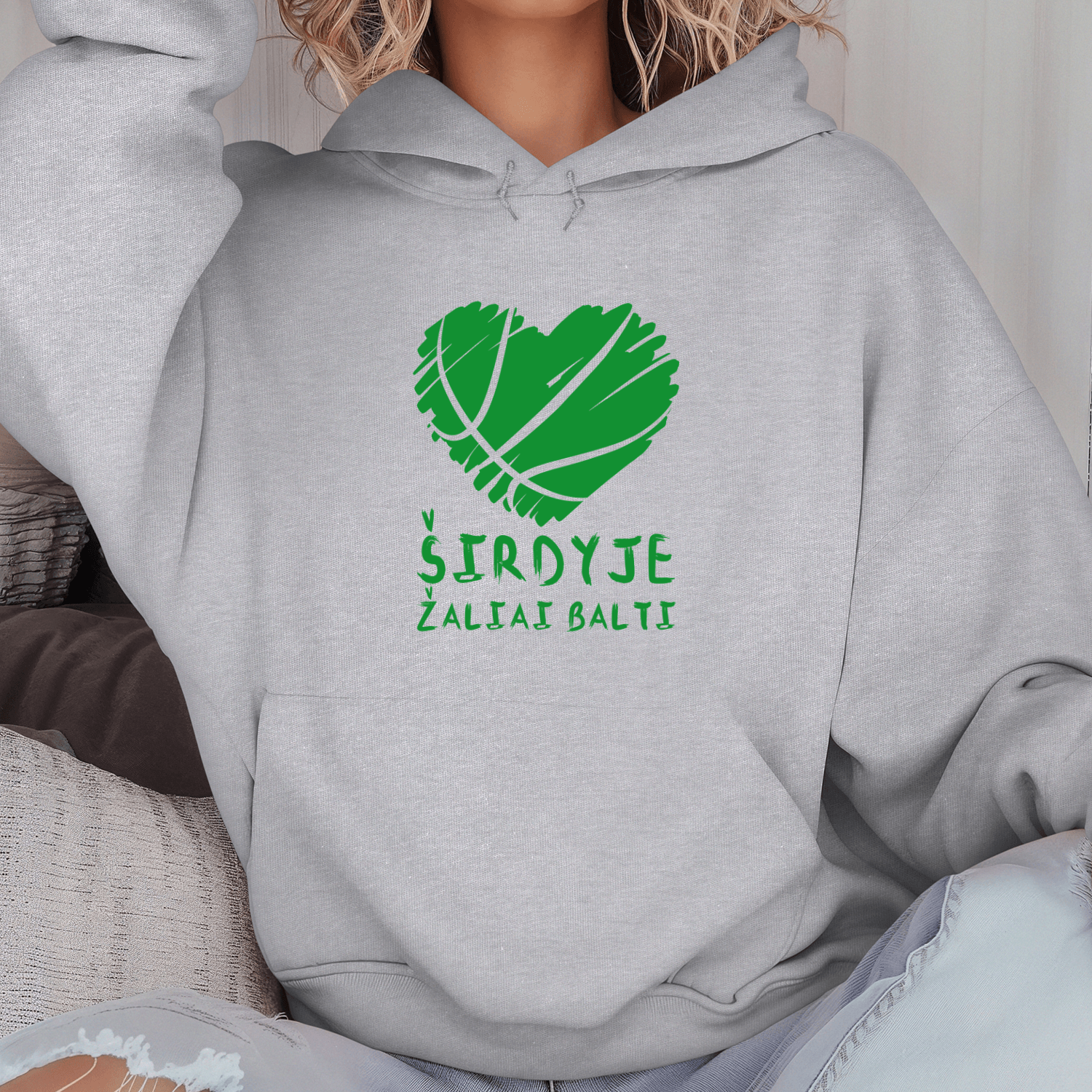 Būkite pirmas aprašęs “Unisex džemperis su spauda „Širdyje žaliai balti“”