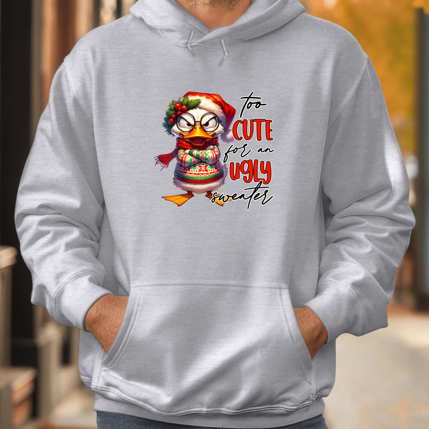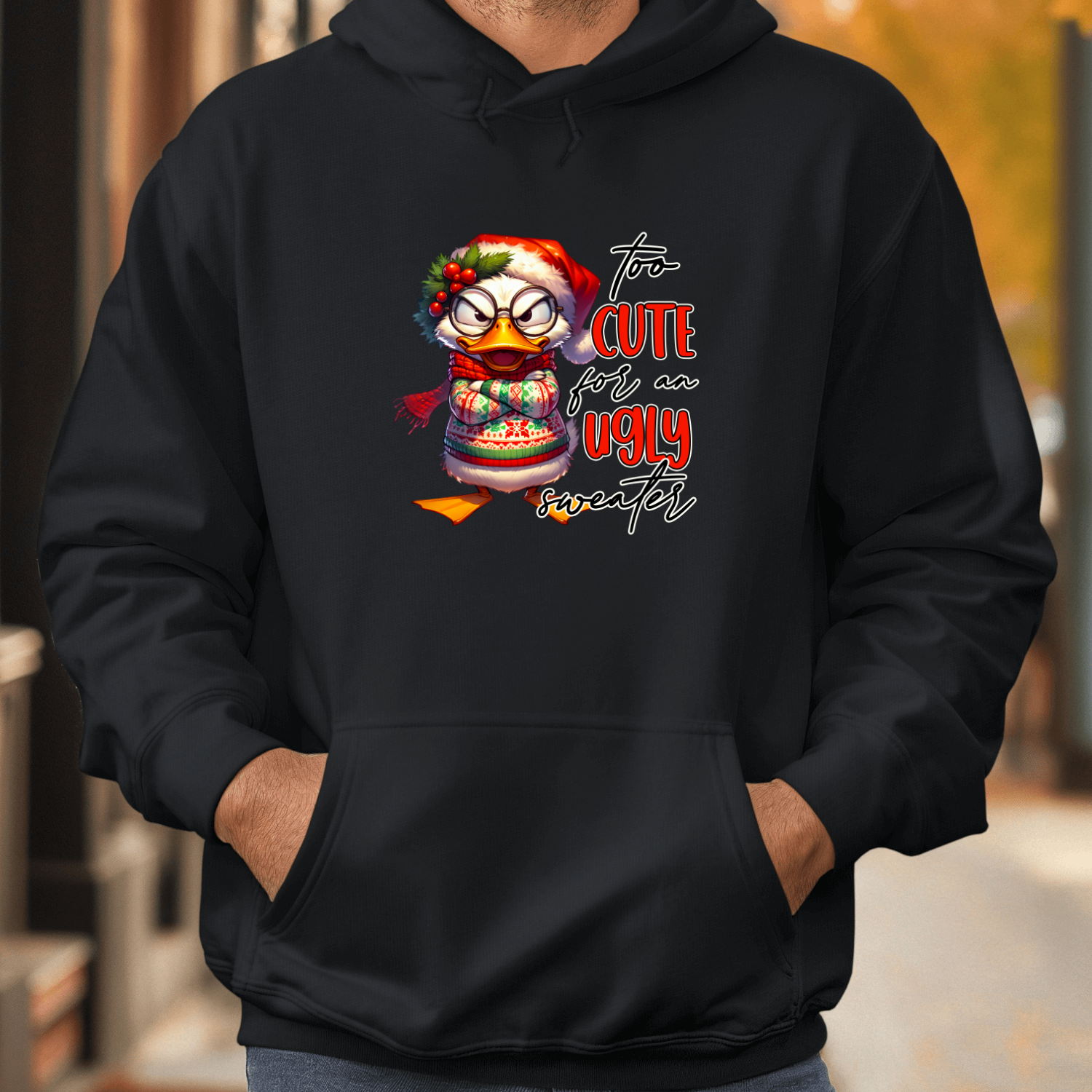 Būkite pirmas aprašęs “Unisex džemperis su spauda „Too cute for ugly sweater“”