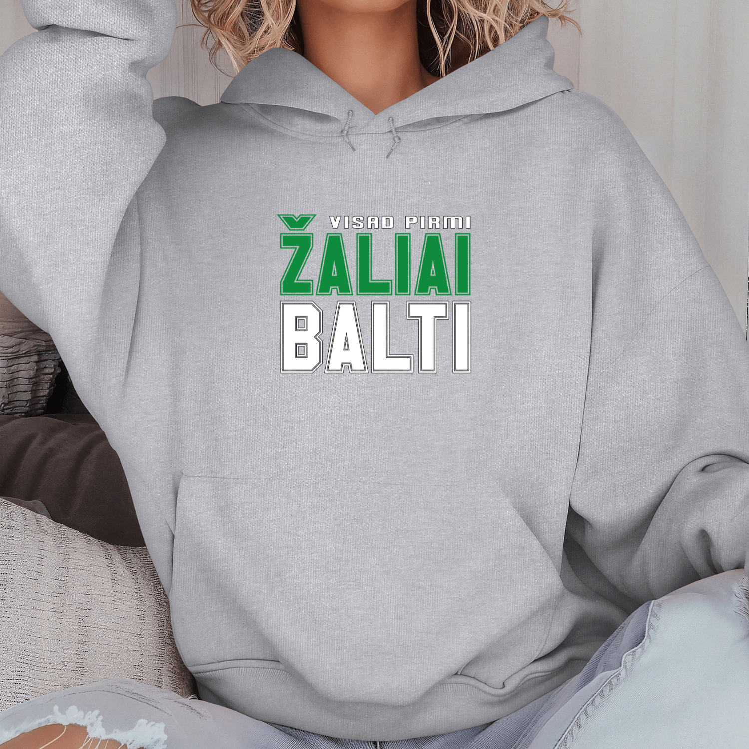 Būkite pirmas aprašęs “Unisex džemperis su spauda „Žalia galia, balta jėga“”