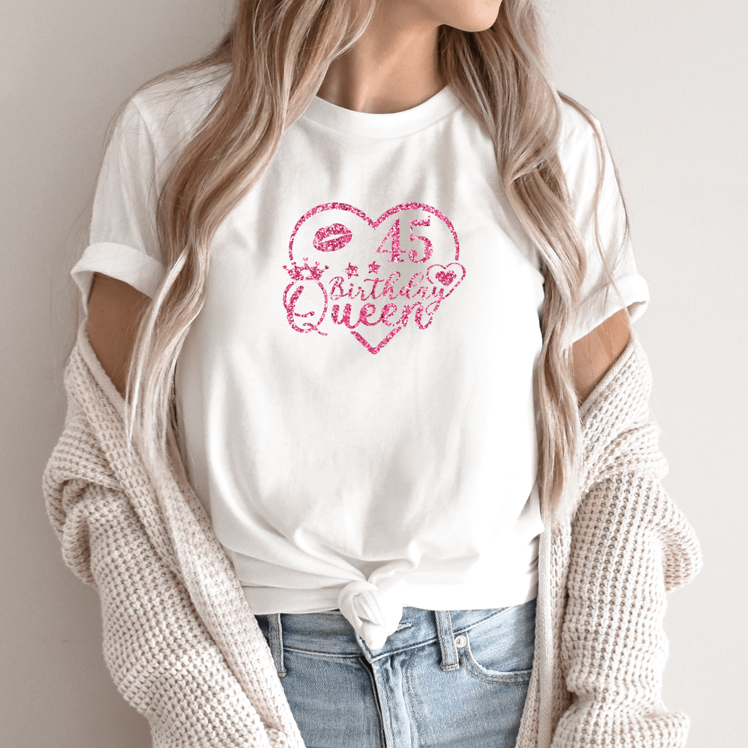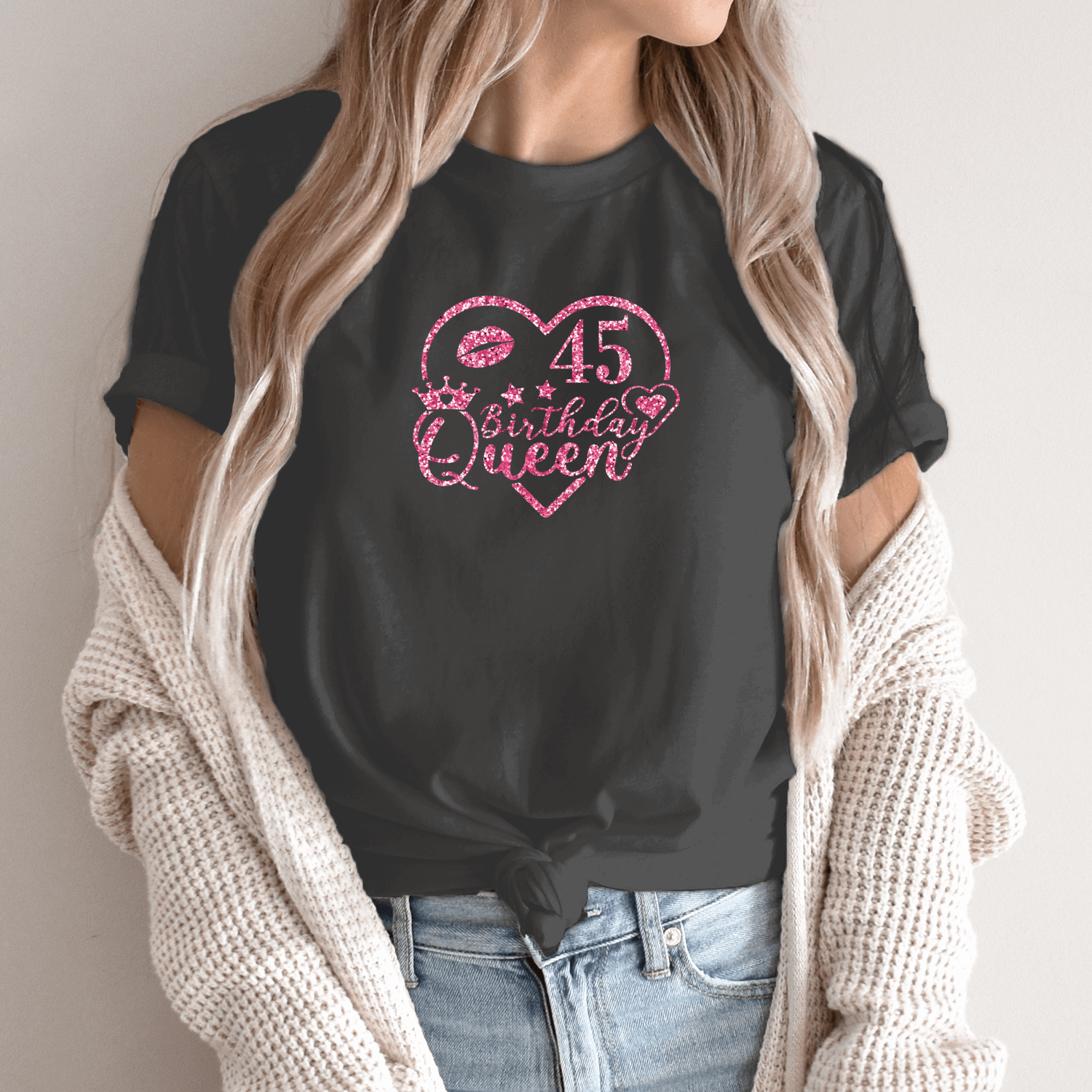 Unisex marškinėliai su spauda „45th Birthday Queen“