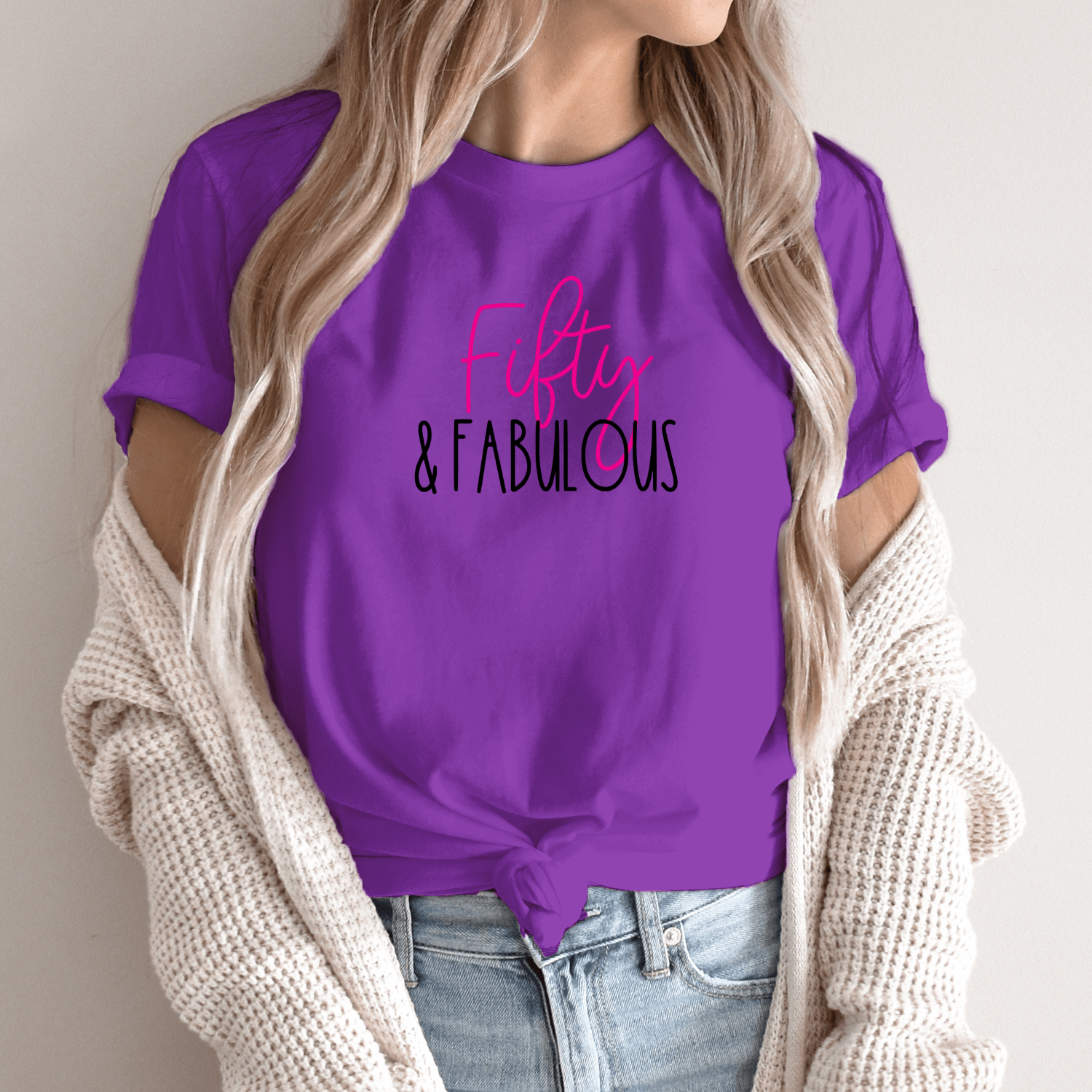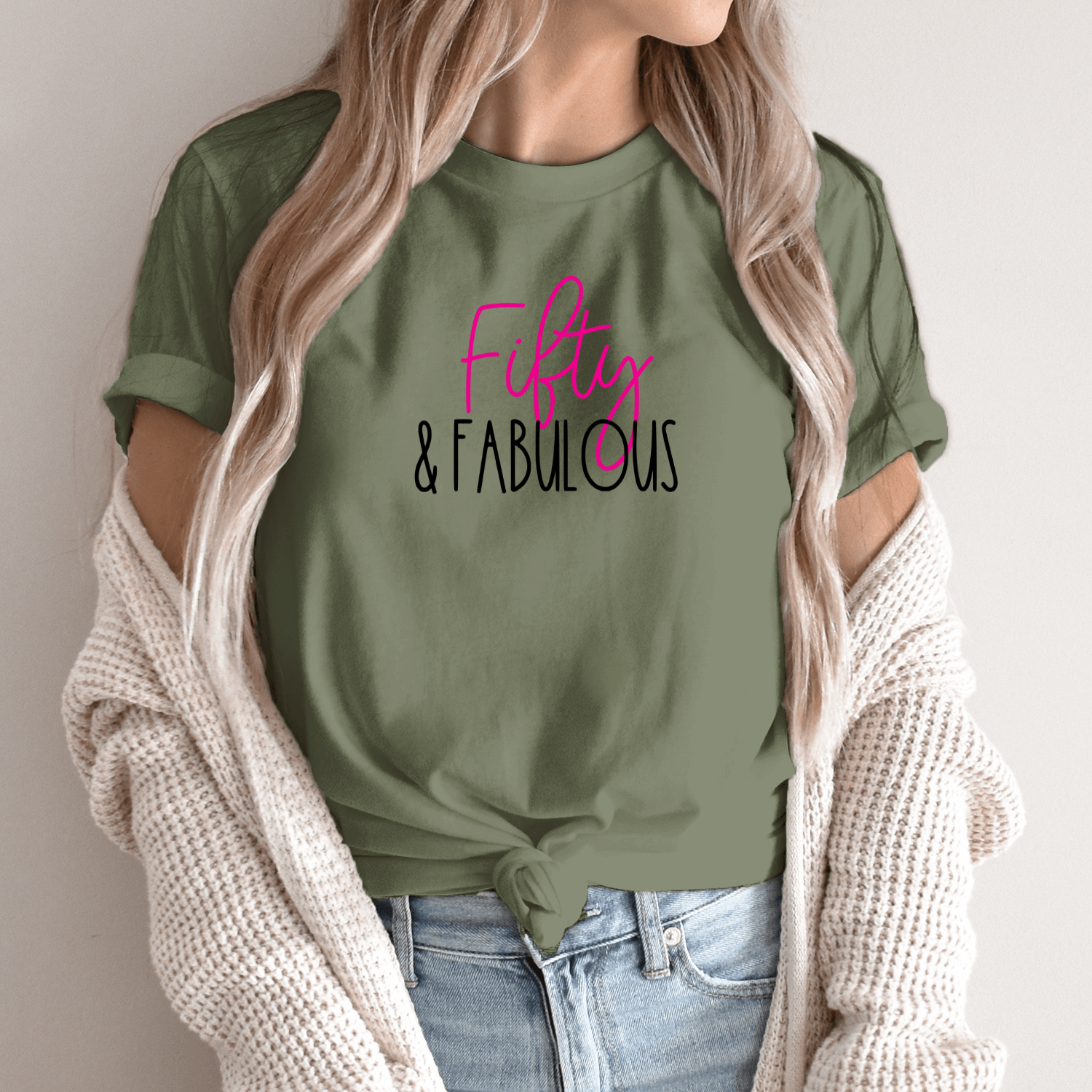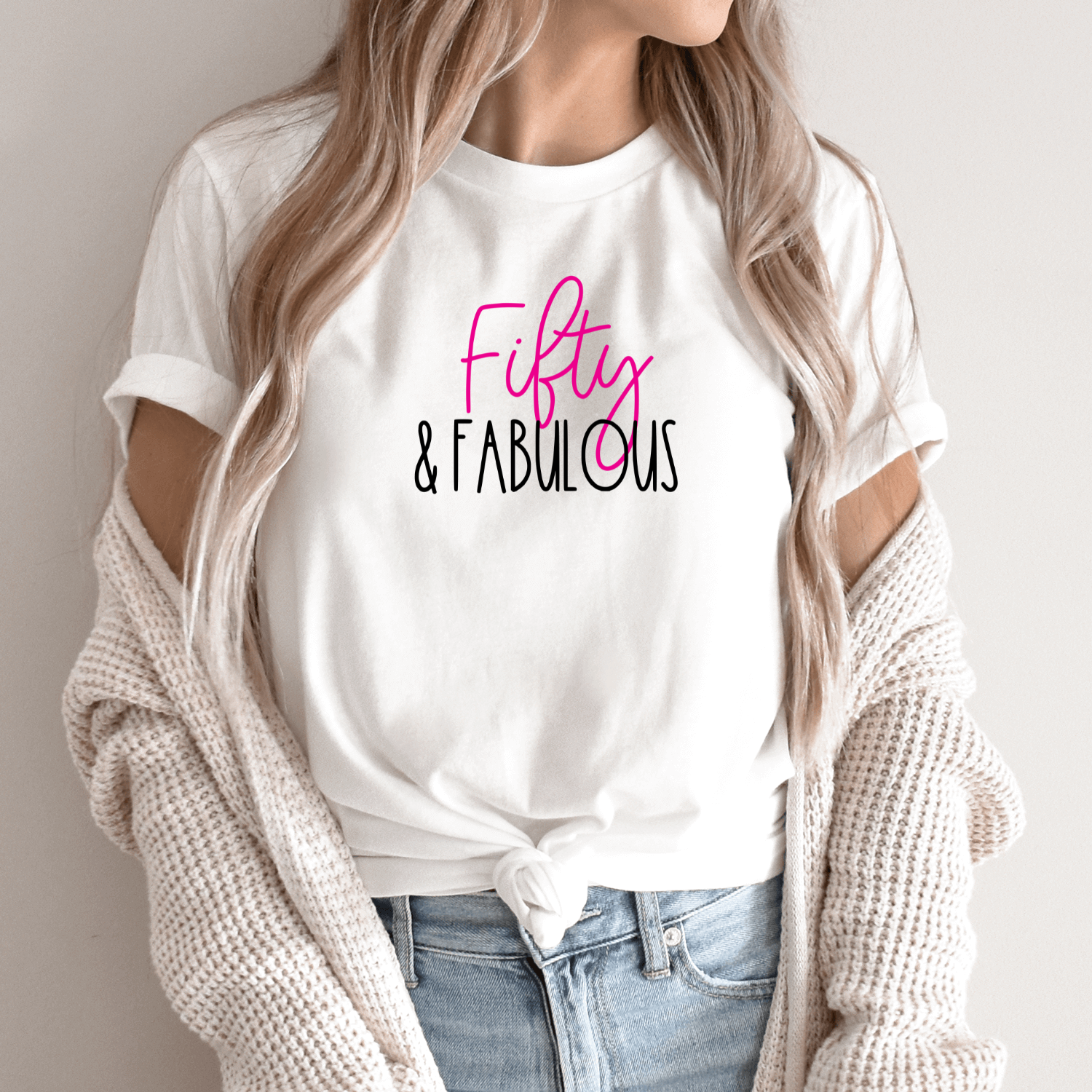 Būkite pirmas aprašęs “Unisex marškinėliai su spauda „50 ir nuostabi“”