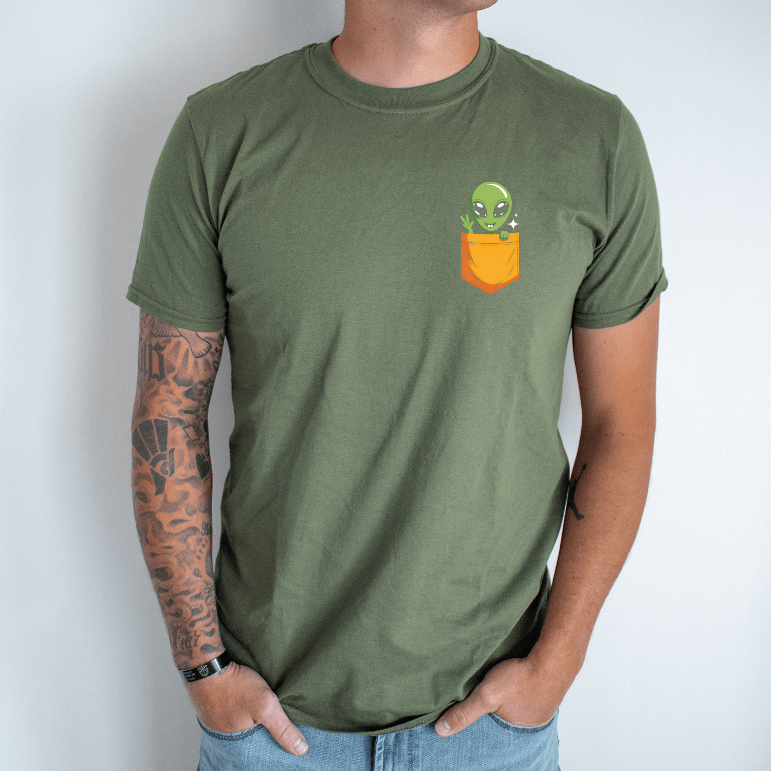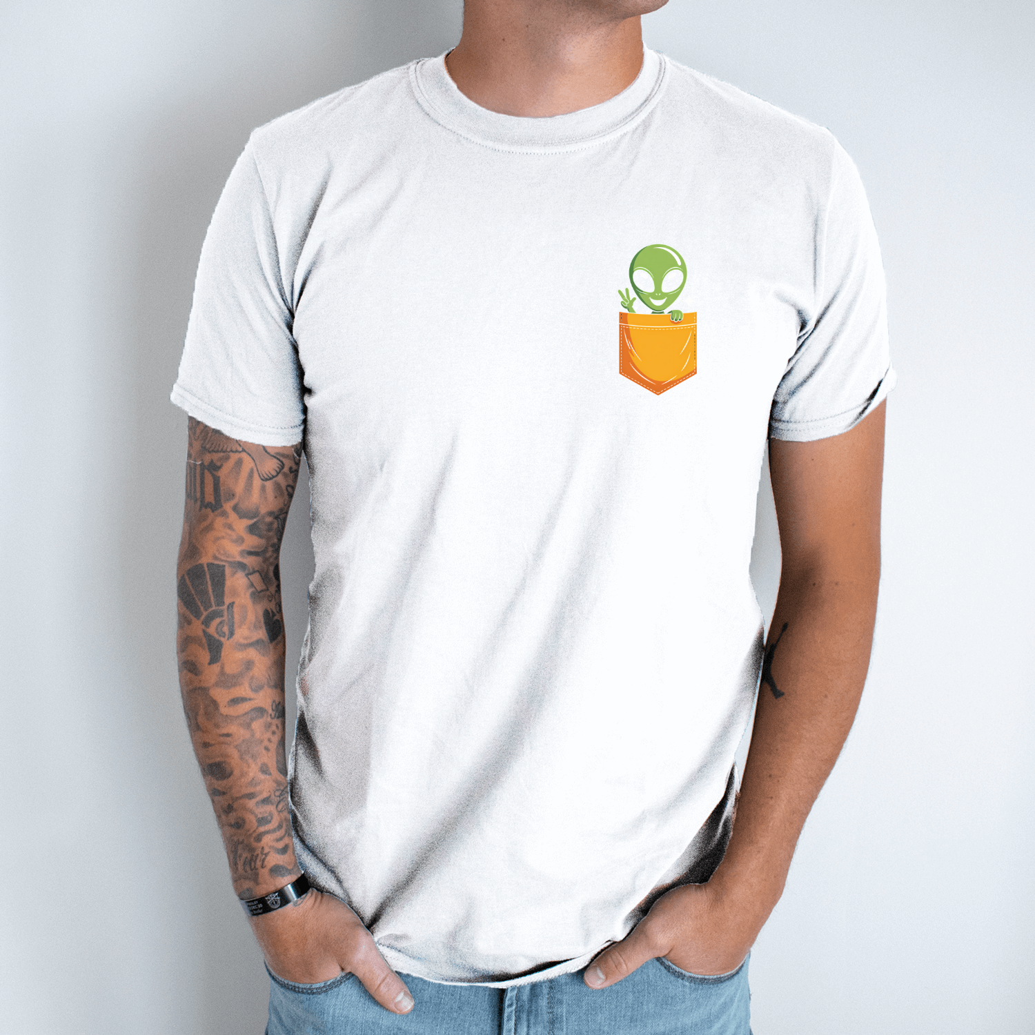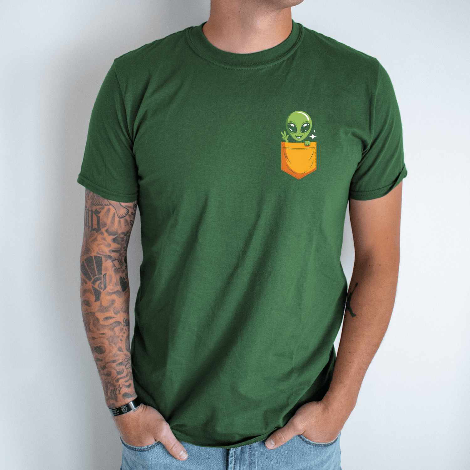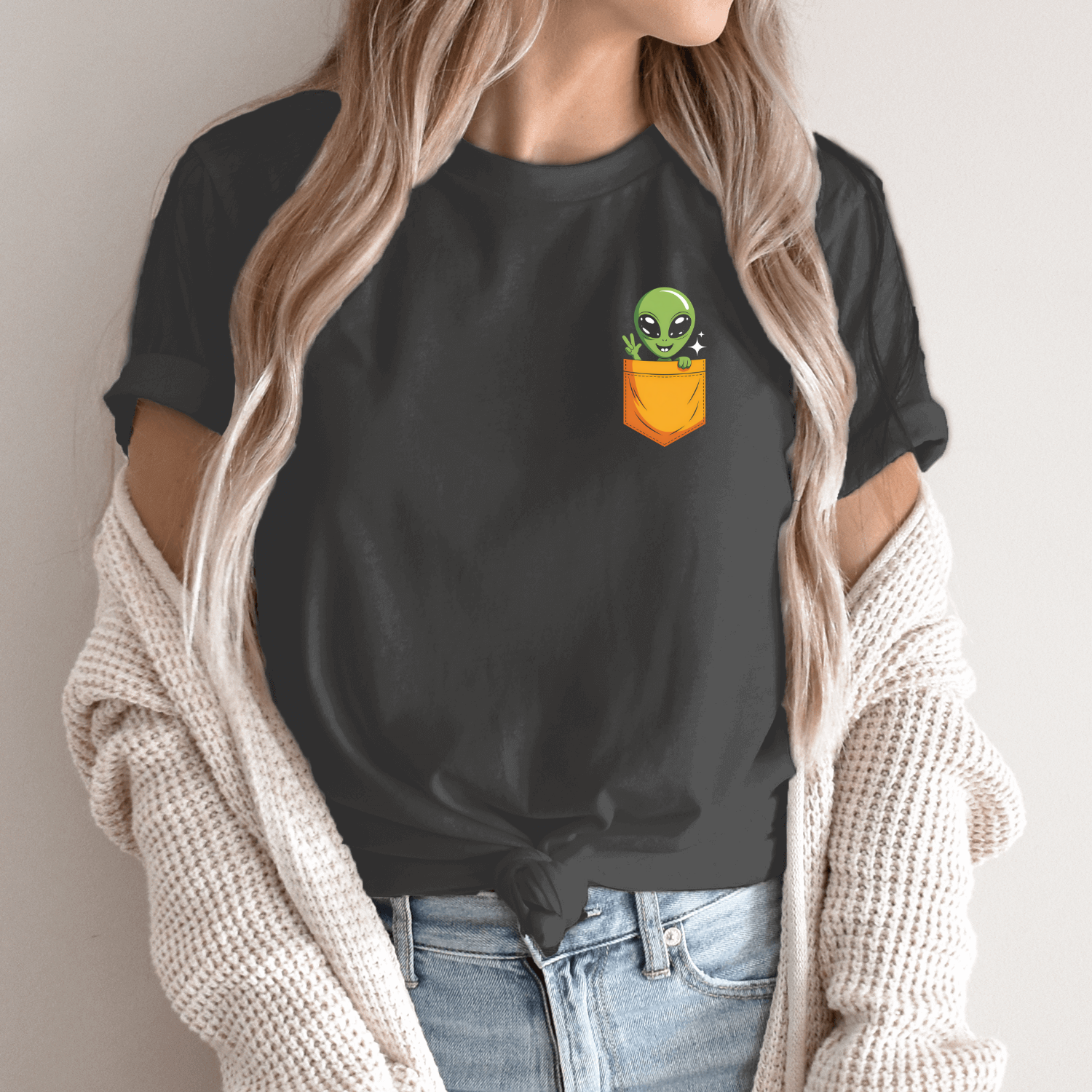 Unisex marškinėliai su spauda „Ateivis kišenėje“