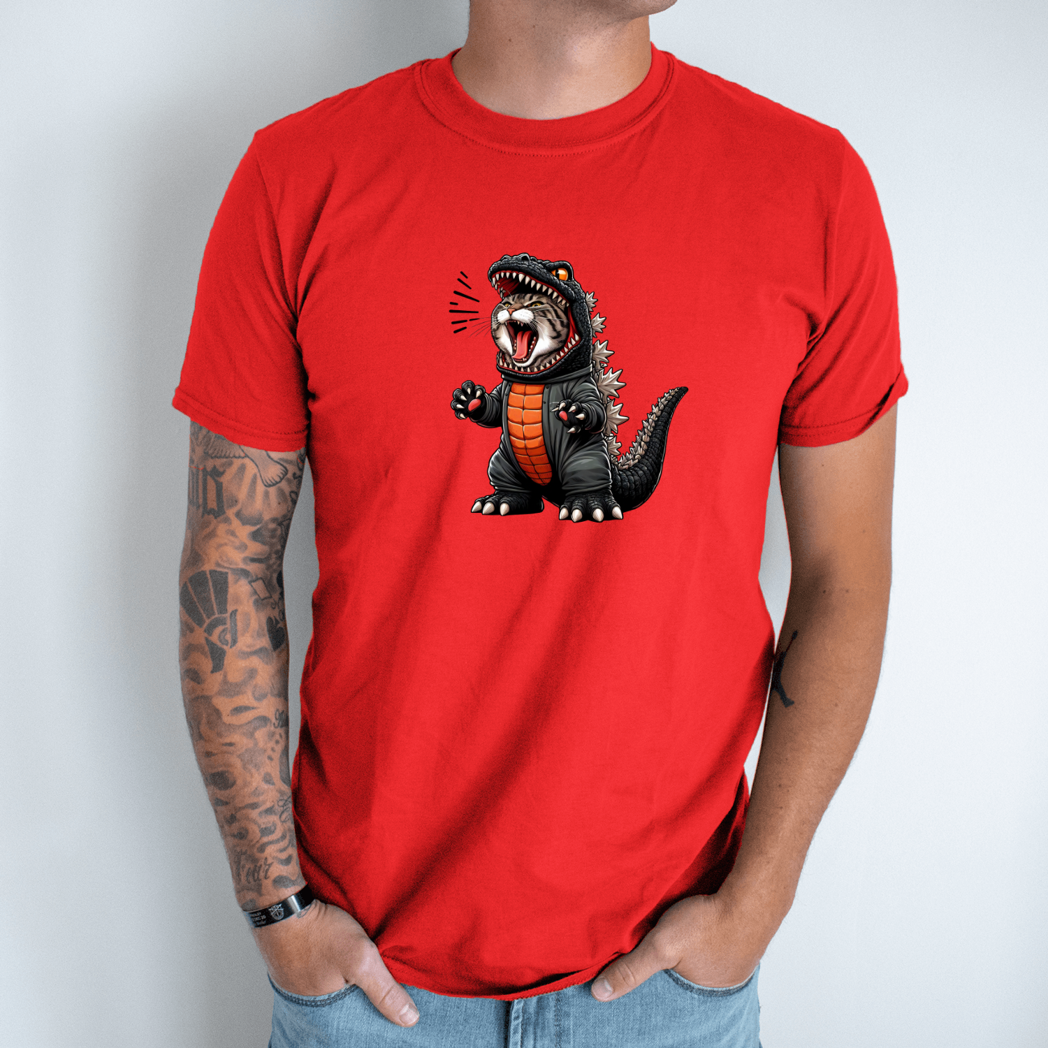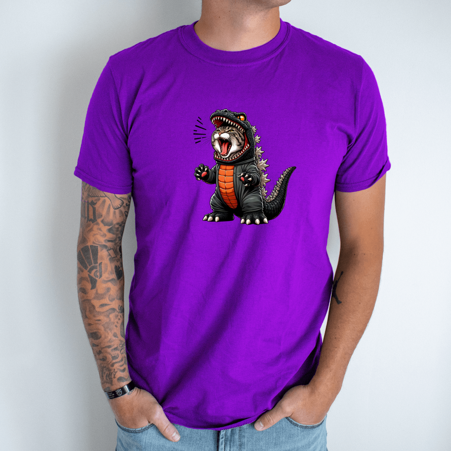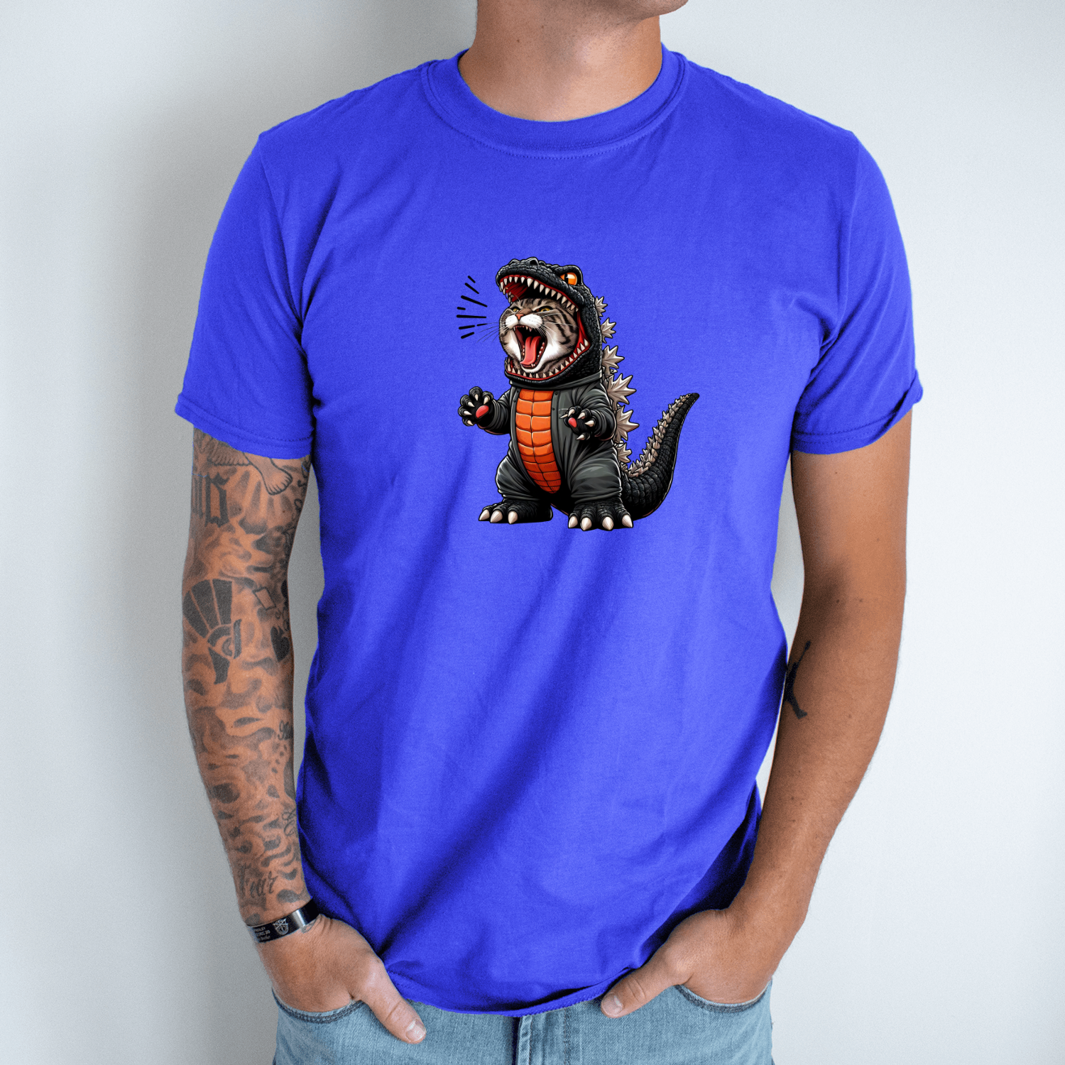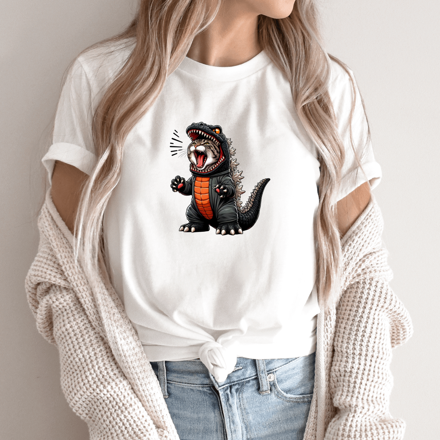Būkite pirmas aprašęs “Unisex marškinėliai su spauda „Dino katinas“”