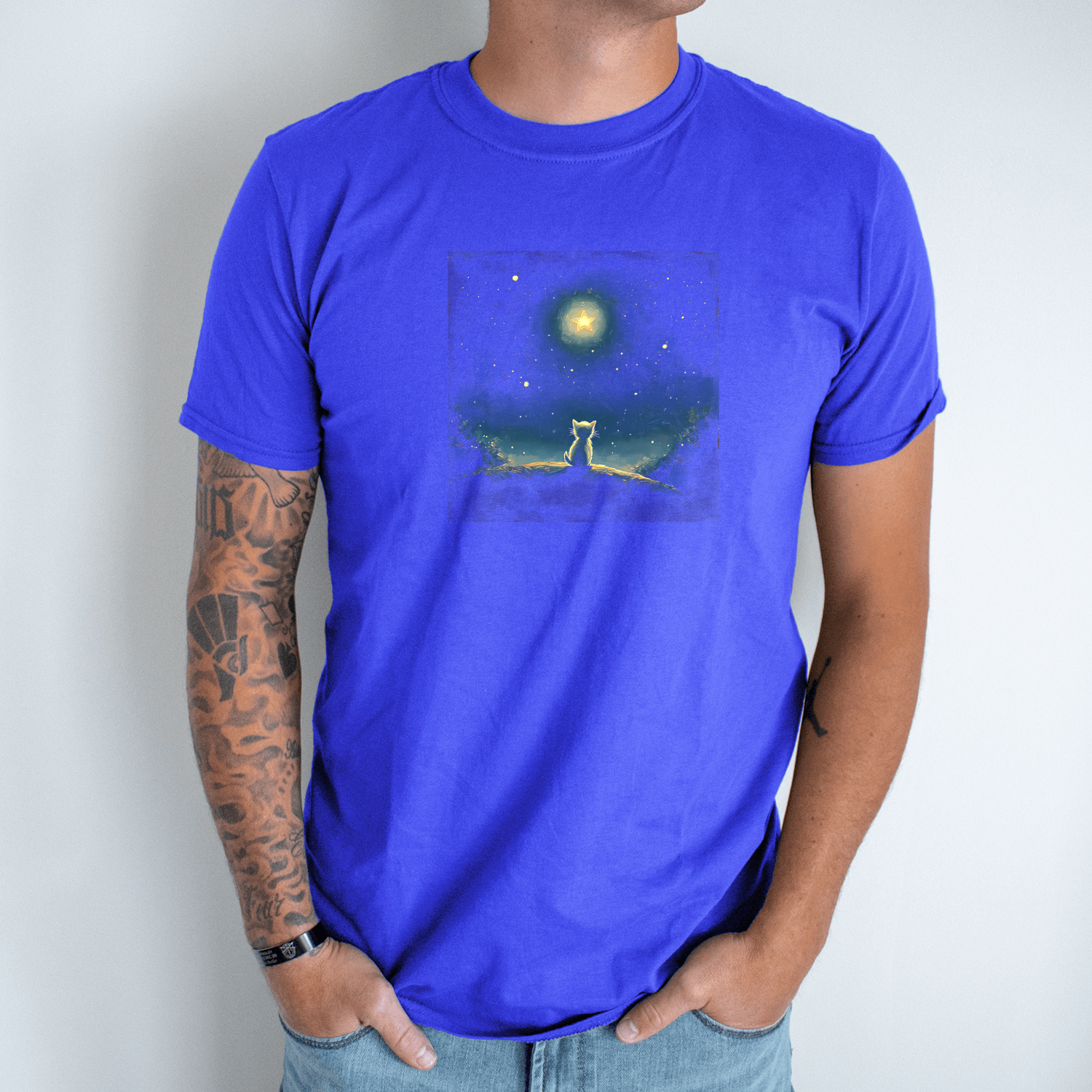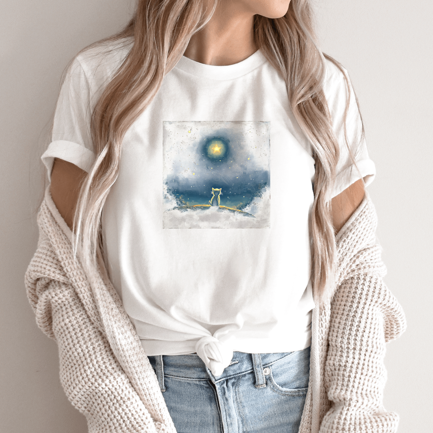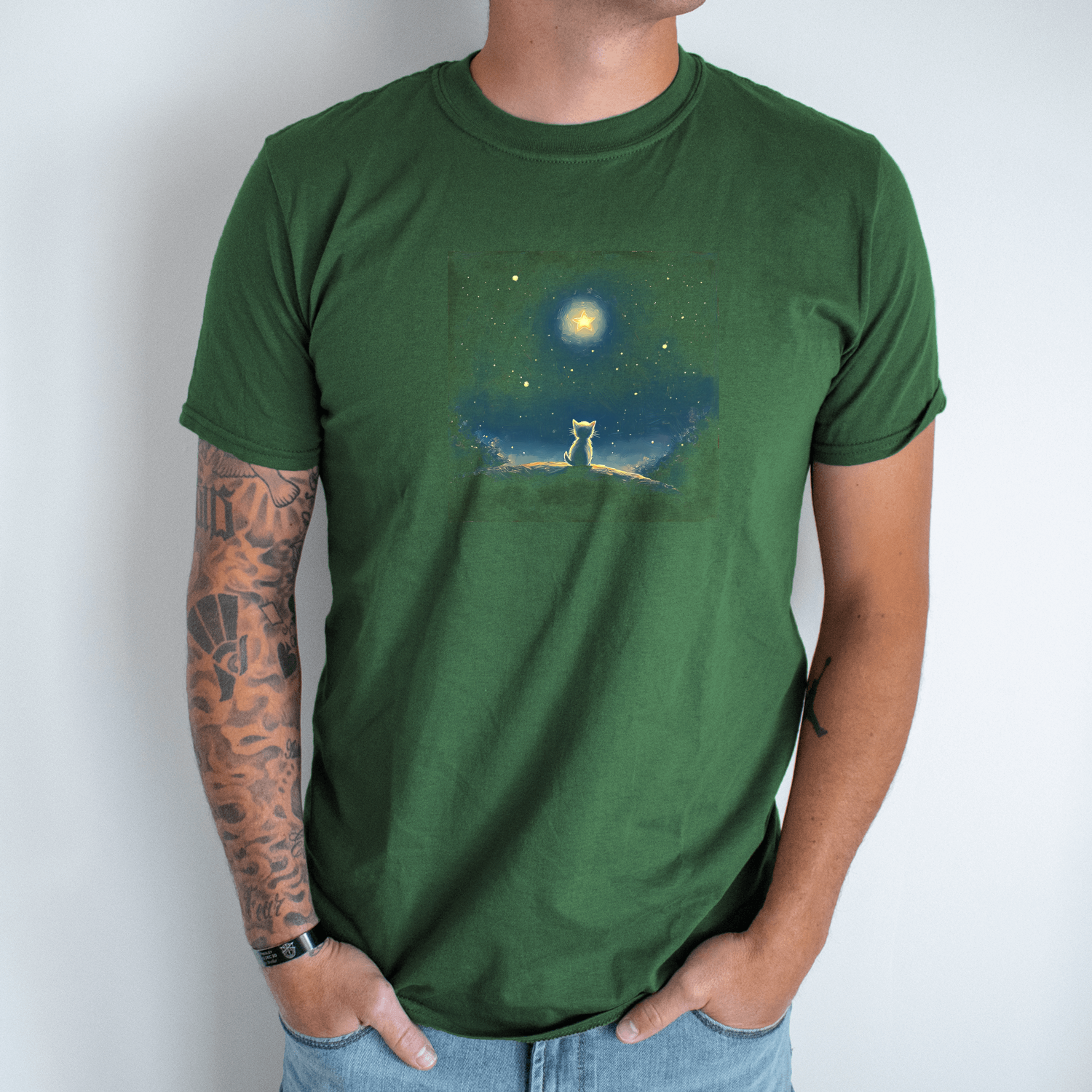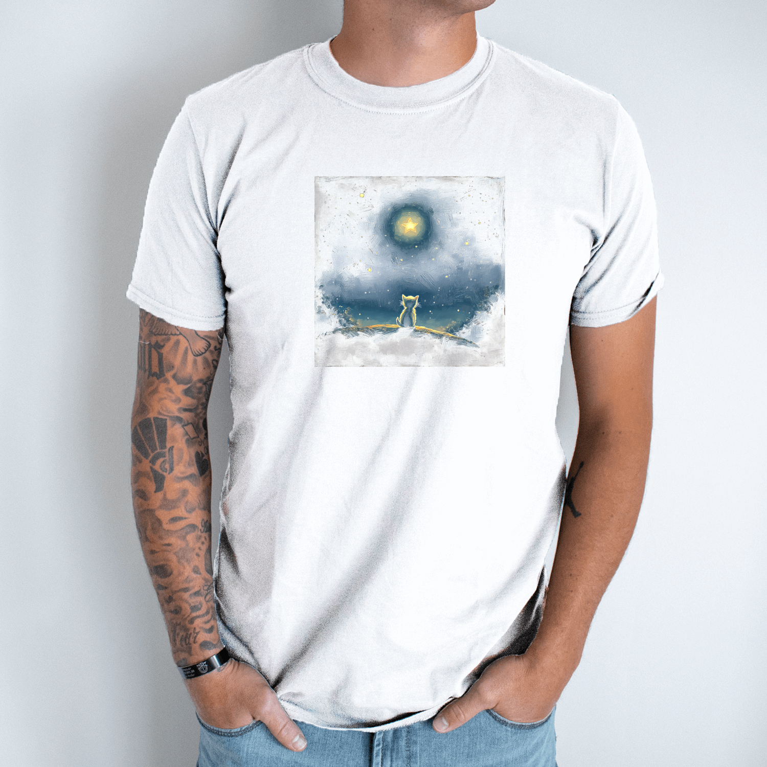 Unisex marškinėliai su spauda „Kačiukas po žvaigžde“