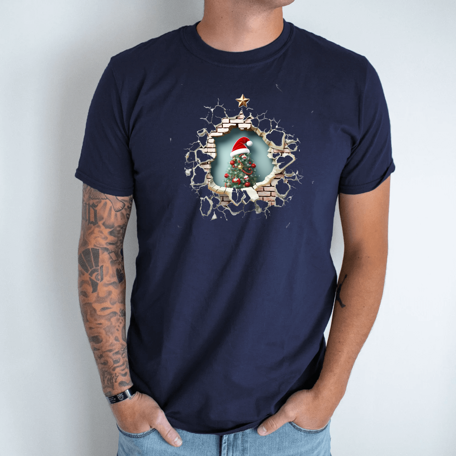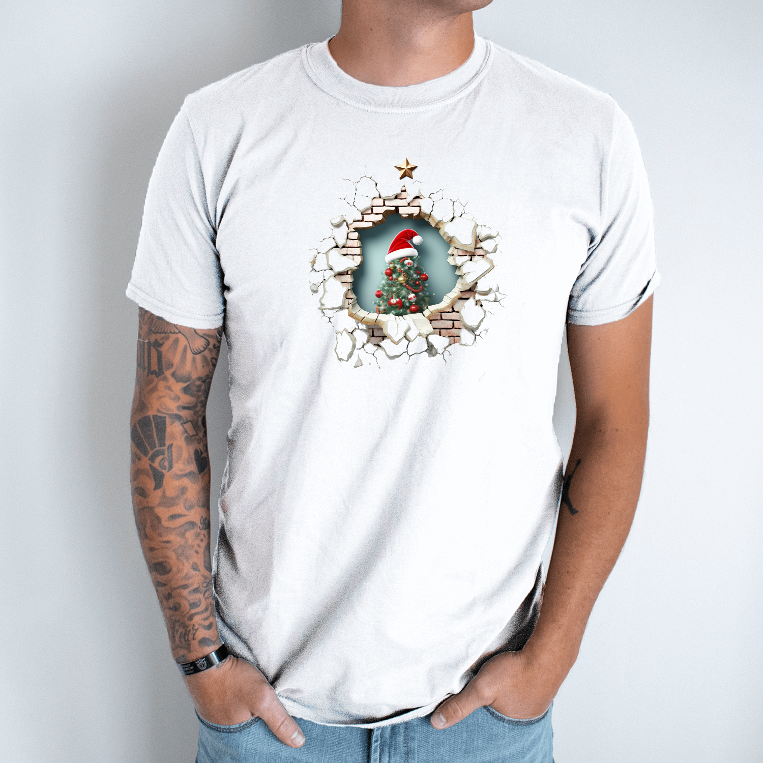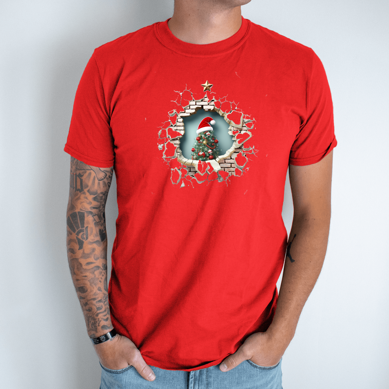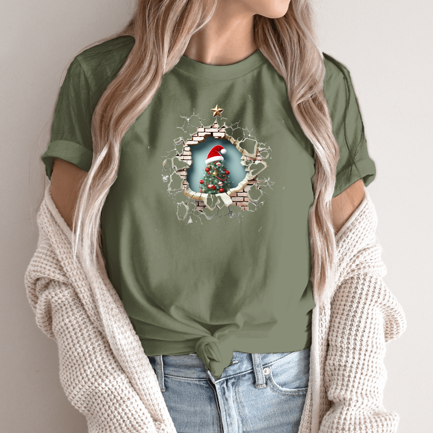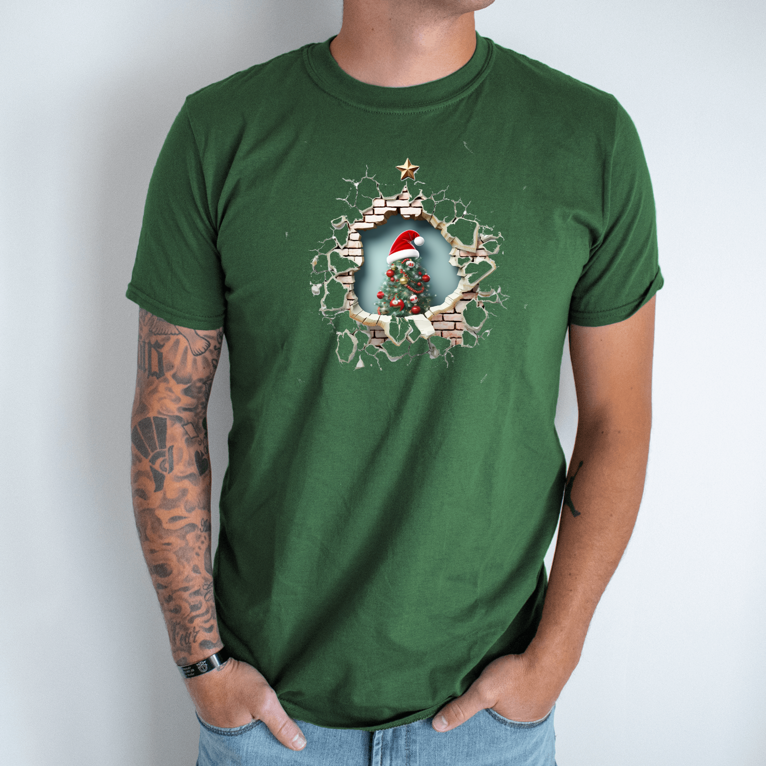Unisex marškinėliai su spauda „Kalėdinė eglutė su kepure“