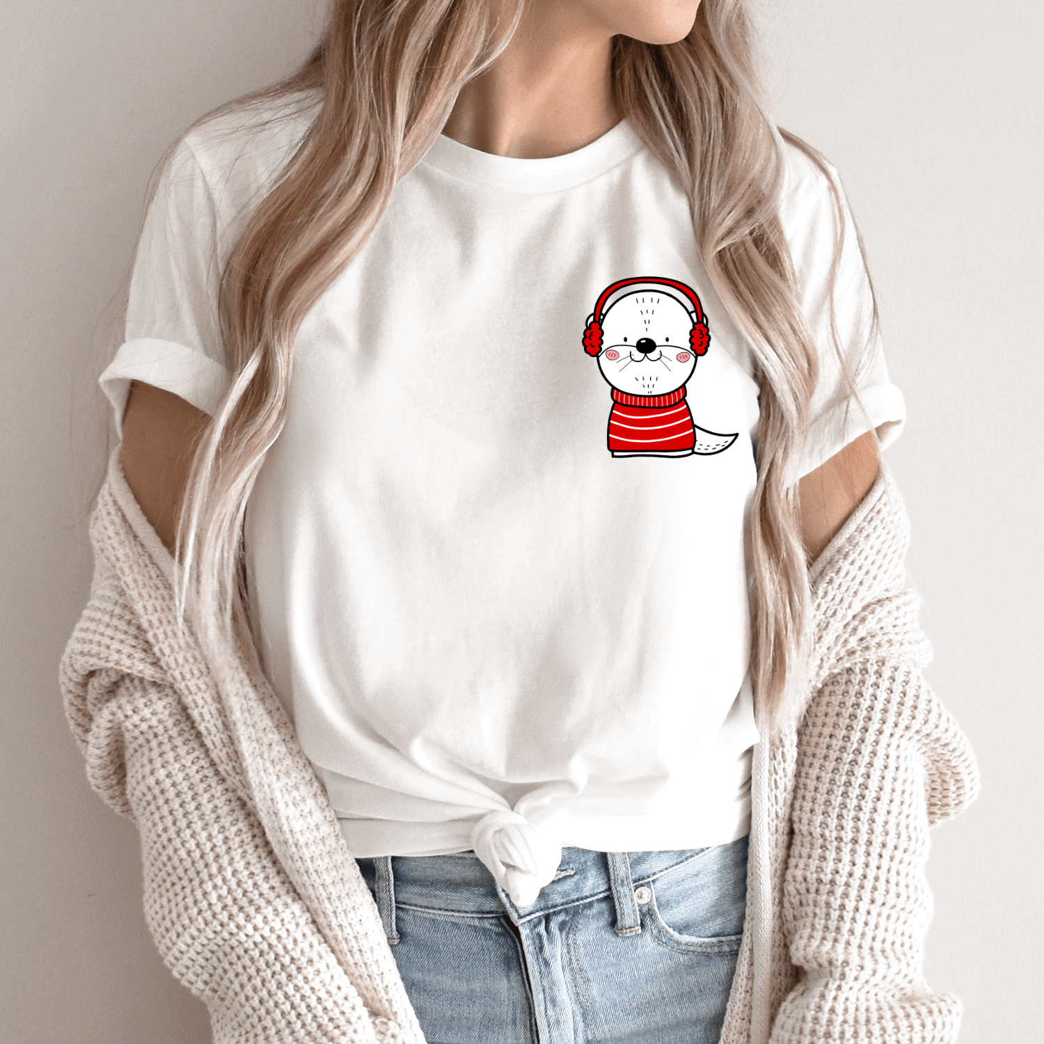 Unisex marškinėliai su spauda „Kalėdinė ūdra“