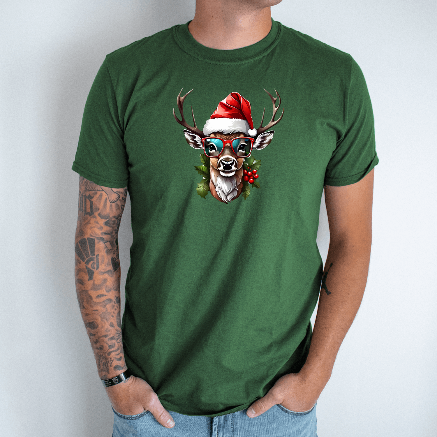 Unisex marškinėliai su spauda „Kalėdų elnias“