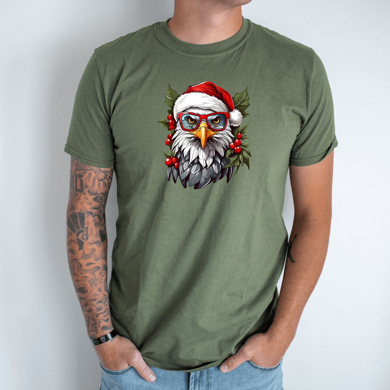 Unisex marškinėliai su spauda „Kalėdų erelis“
