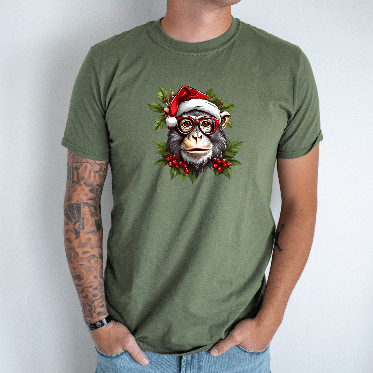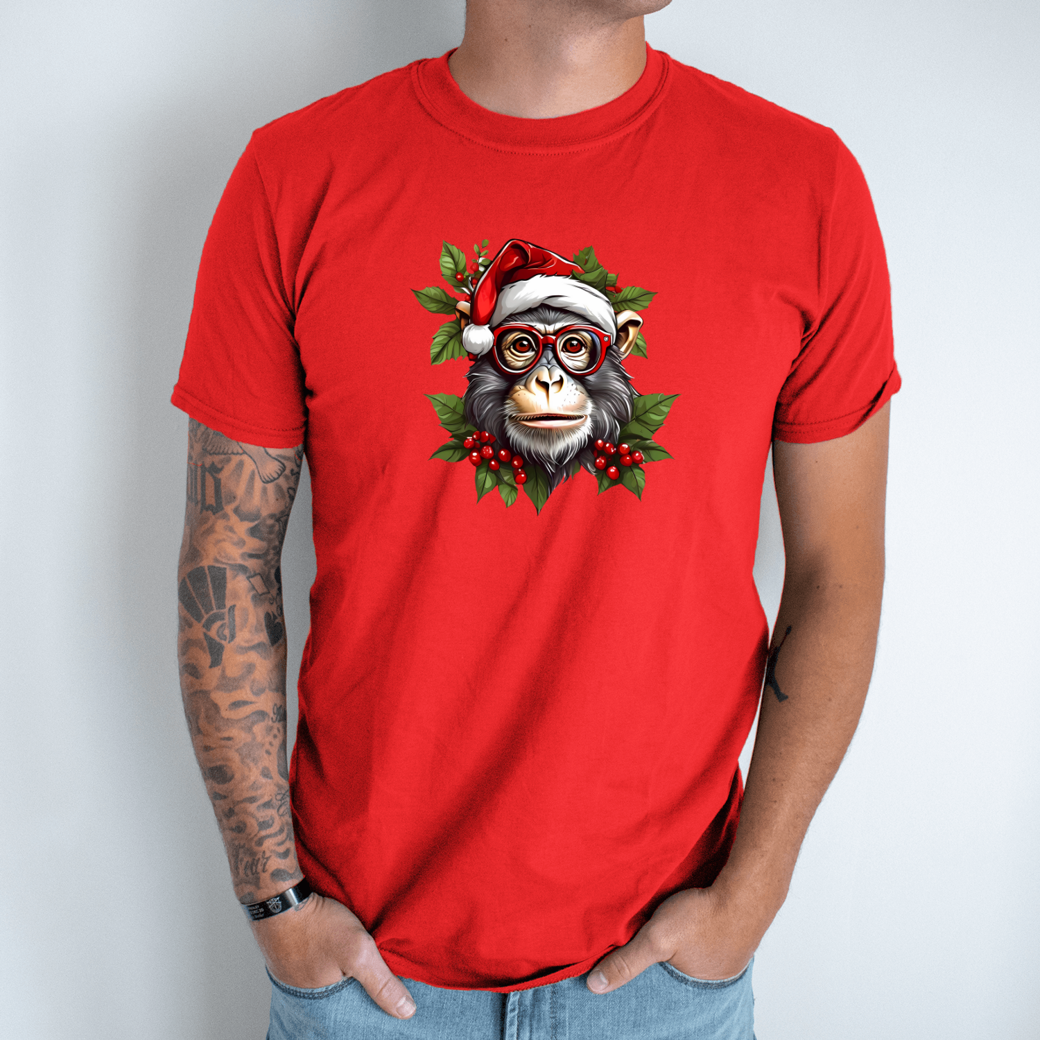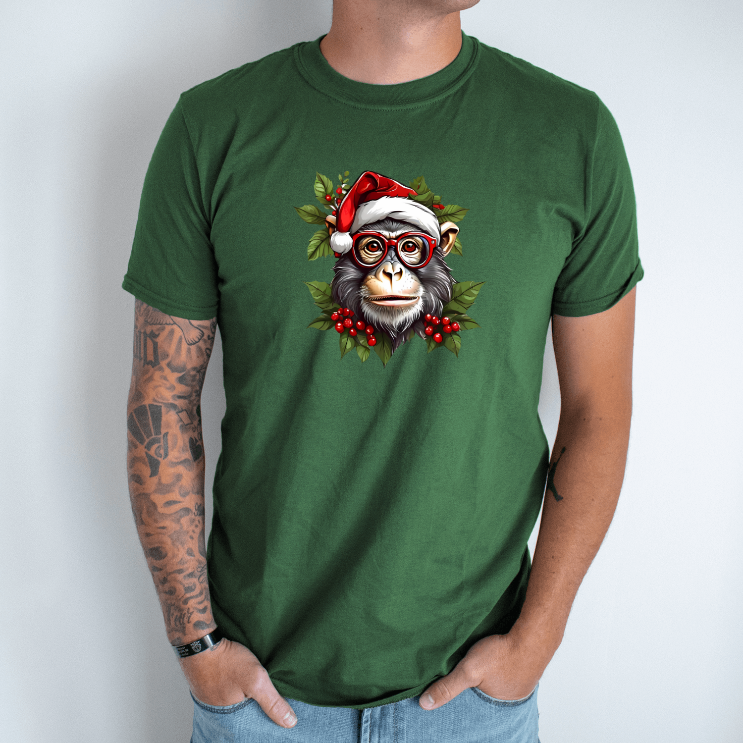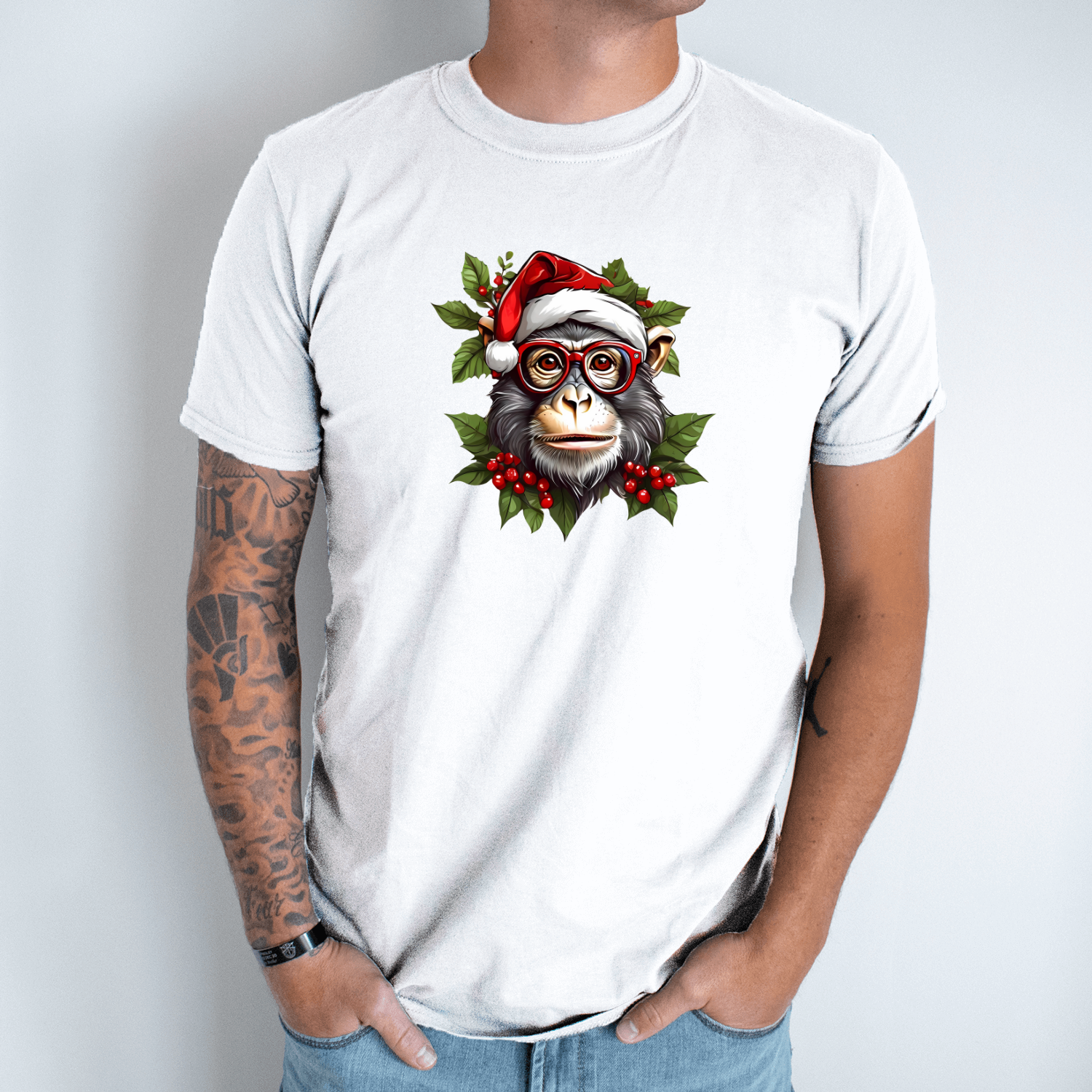 Unisex marškinėliai su spauda „Kalėdų šimpanzė“