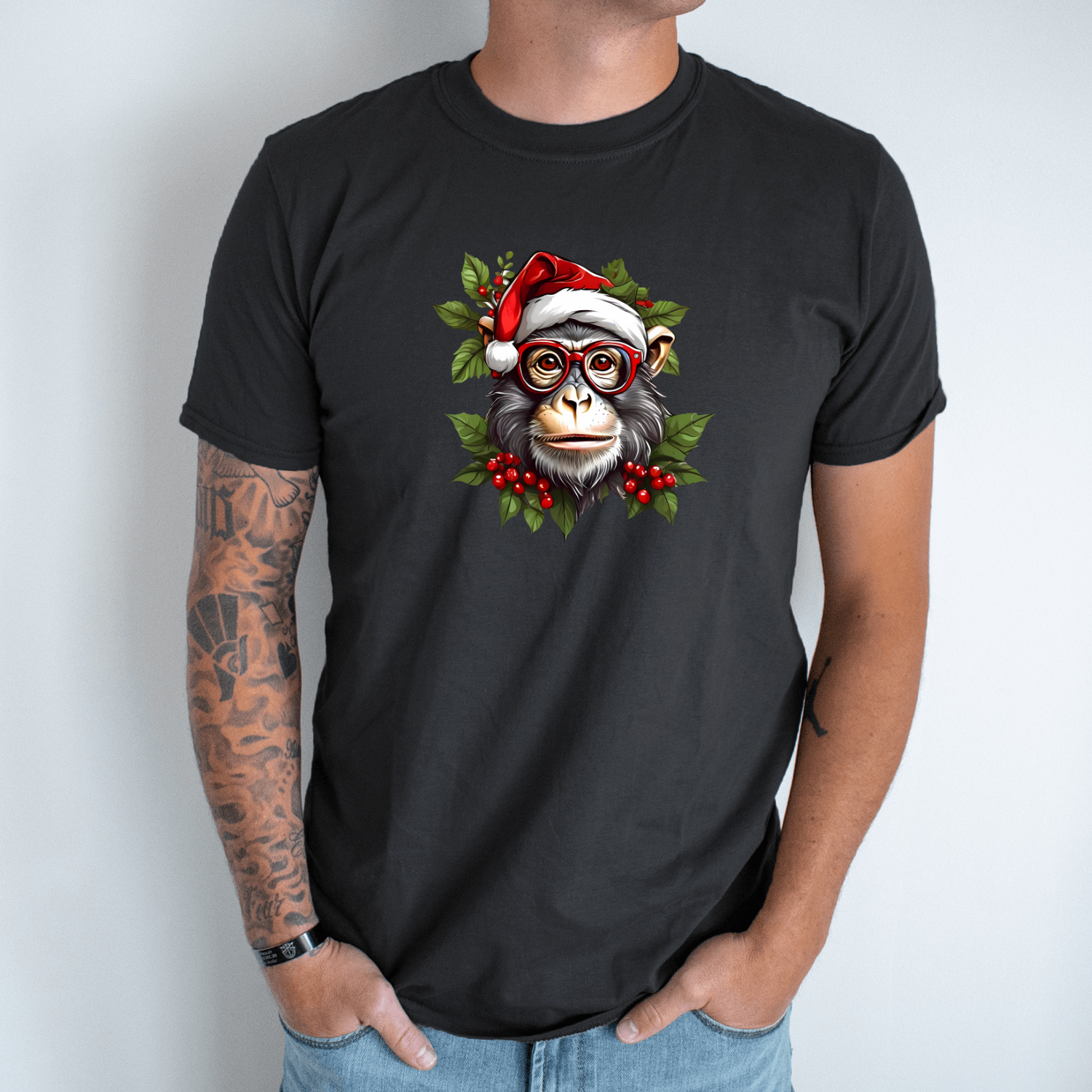 Būkite pirmas aprašęs “Unisex marškinėliai su spauda „Kalėdų šimpanzė“”