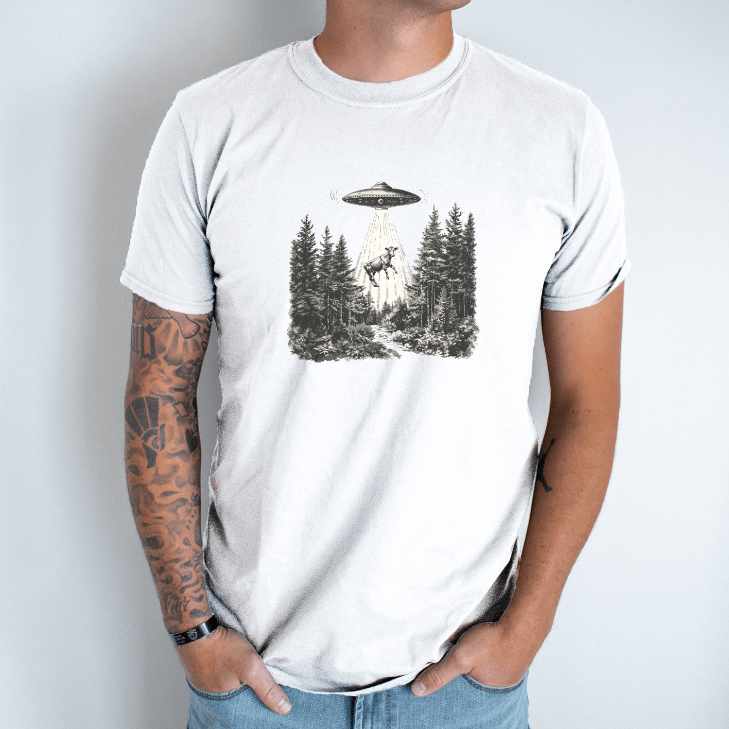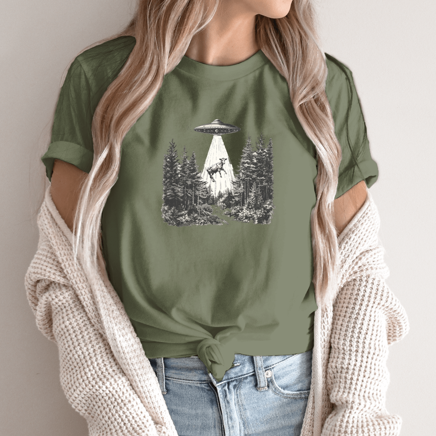 Unisex marškinėliai su spauda „Karvė pakeliui į Marsą“