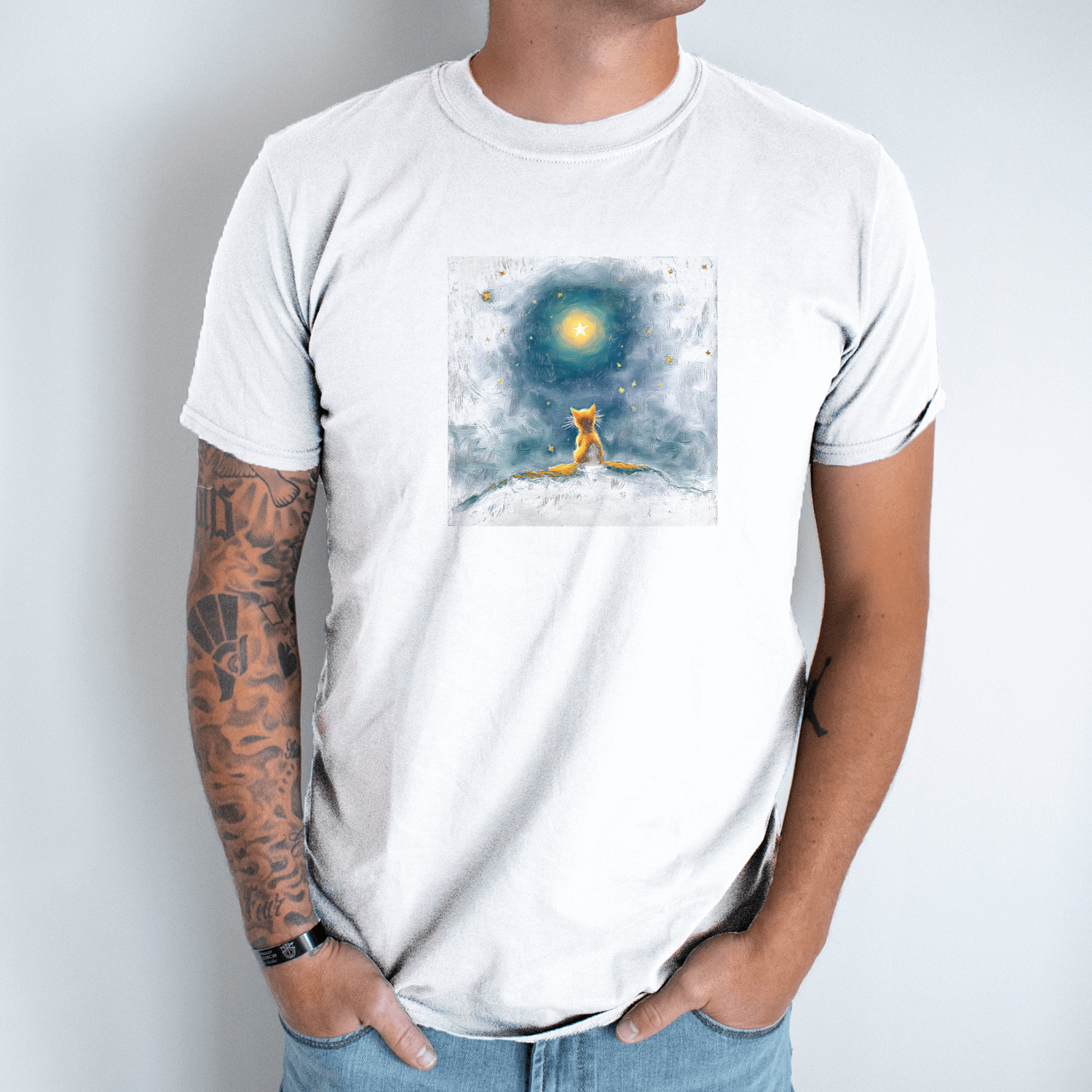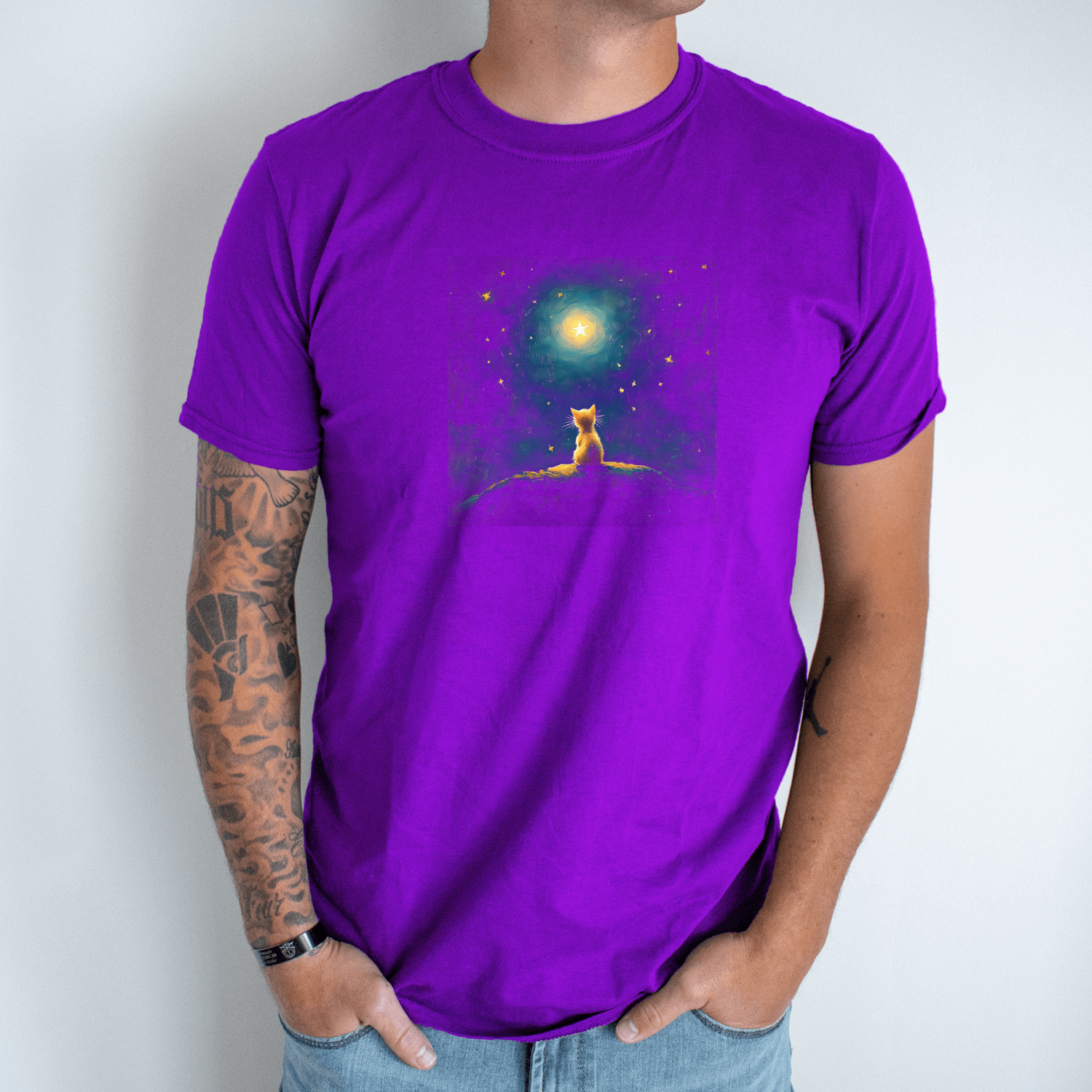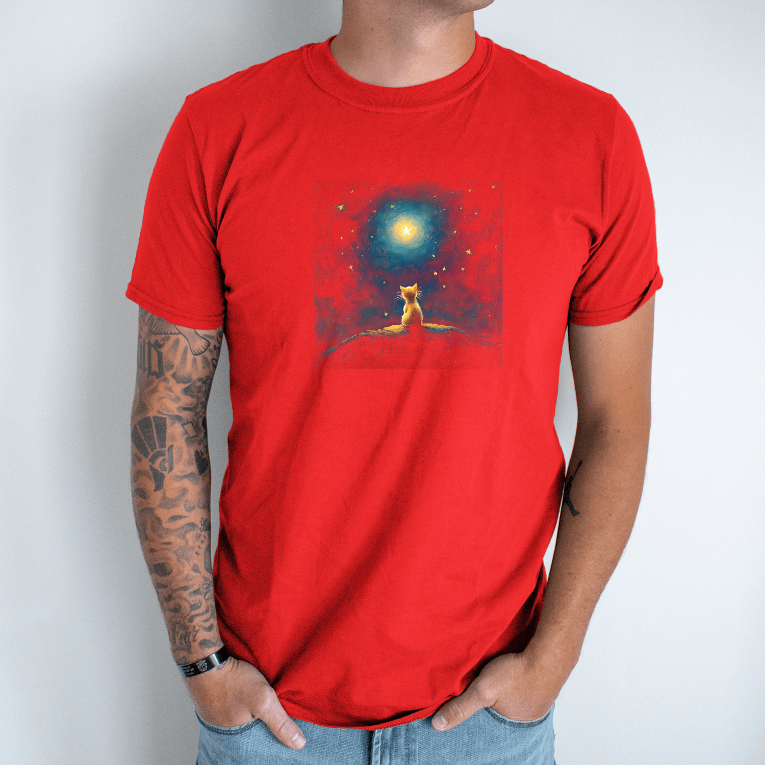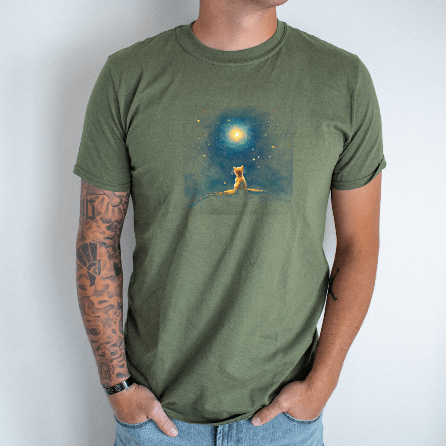 Unisex marškinėliai su spauda „Katinas po žvaigžde“