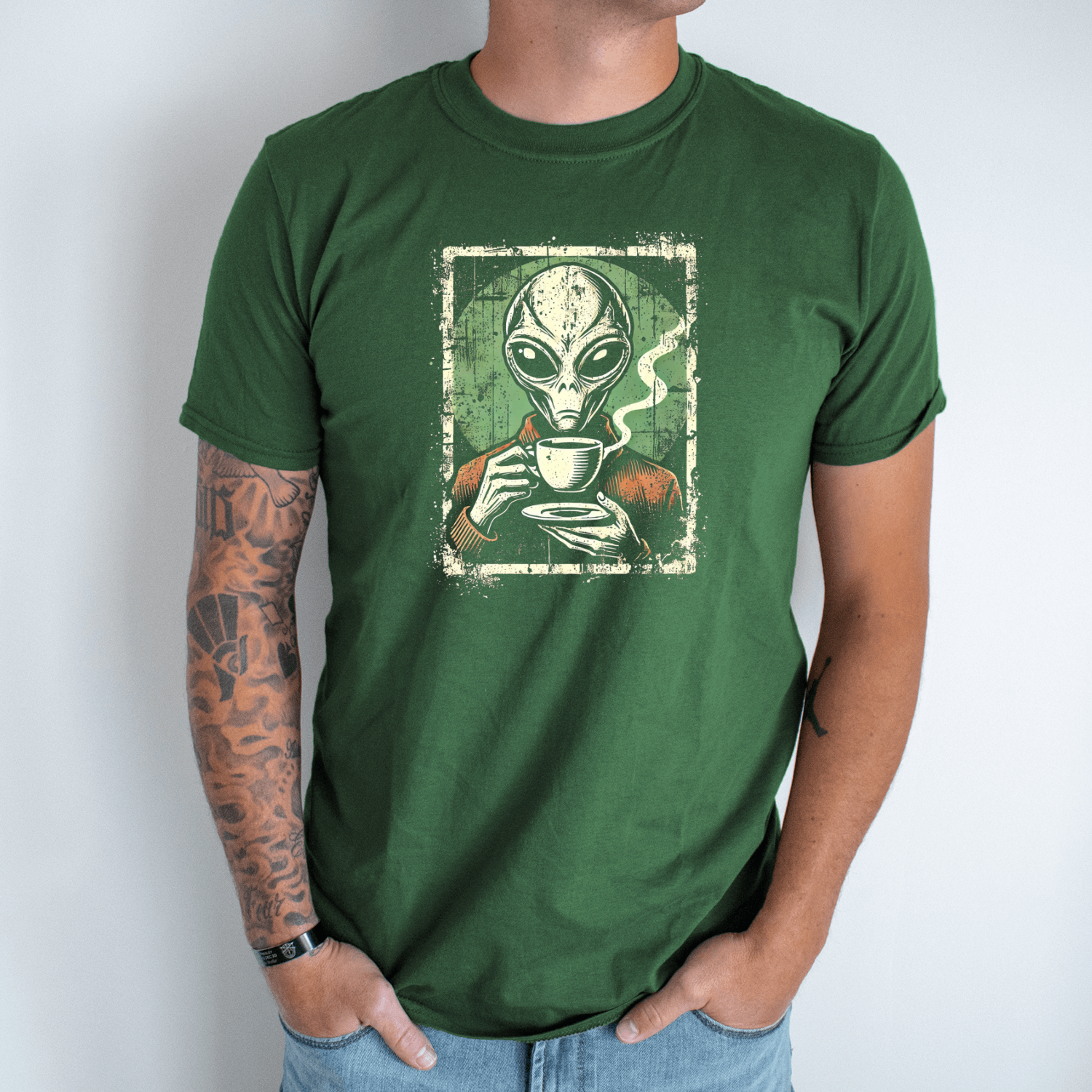 Unisex marškinėliai su spauda „Kava iš kitos galaktikos“