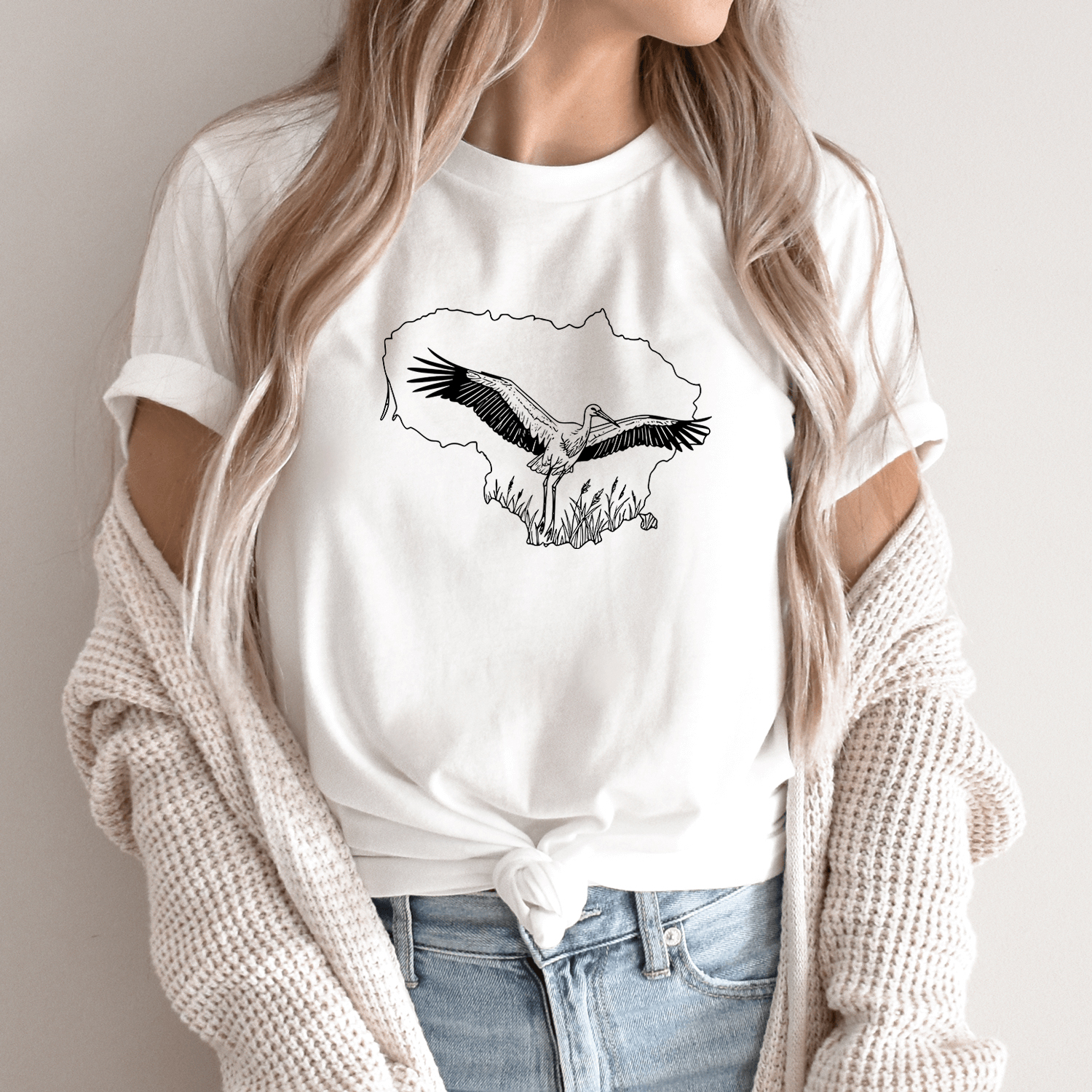 Unisex marškinėliai su spauda „Lietuvos gandras“
