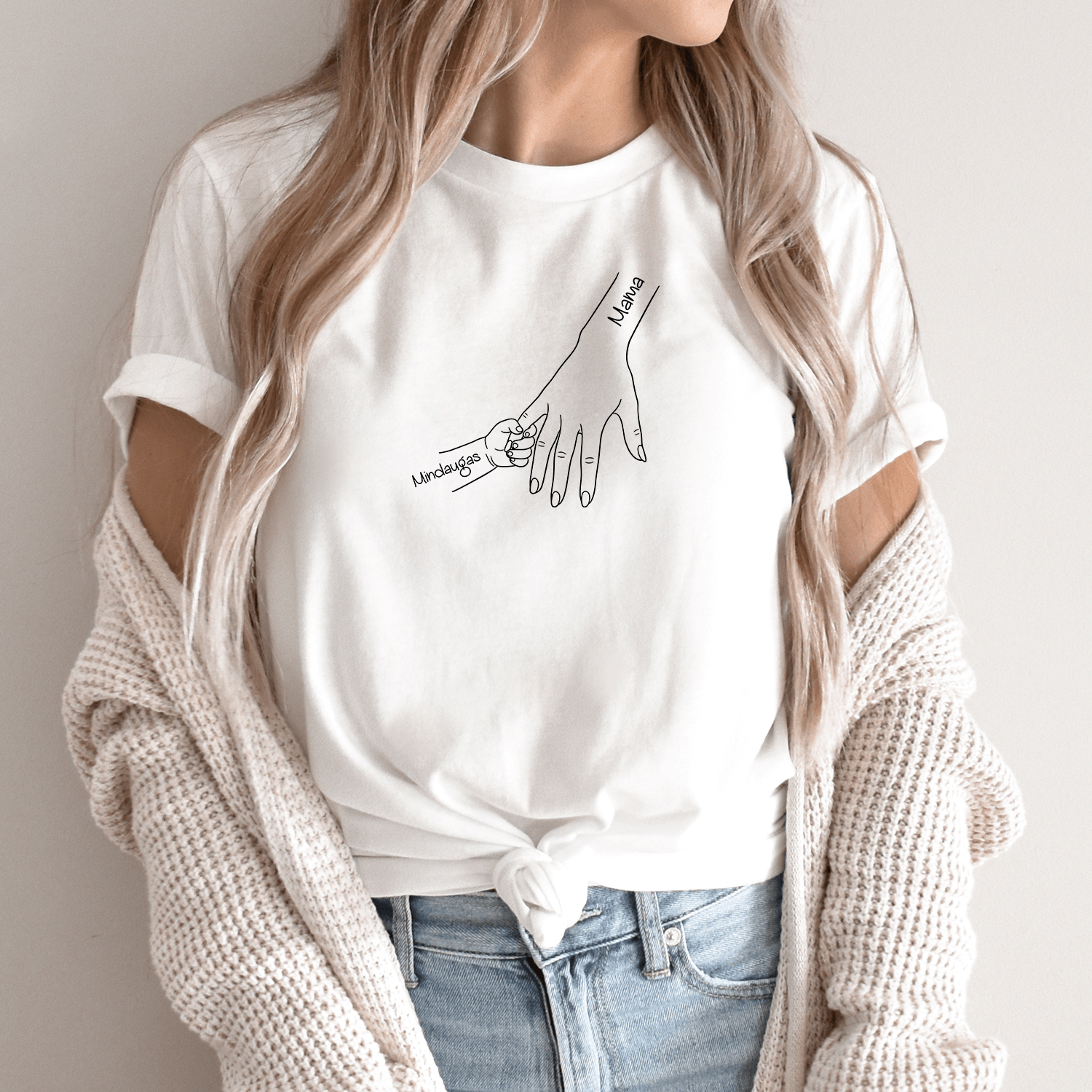 Unisex marškinėliai su spauda „Mama, laikyk ranką“
