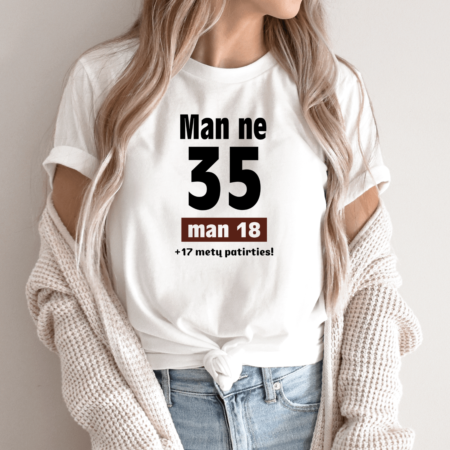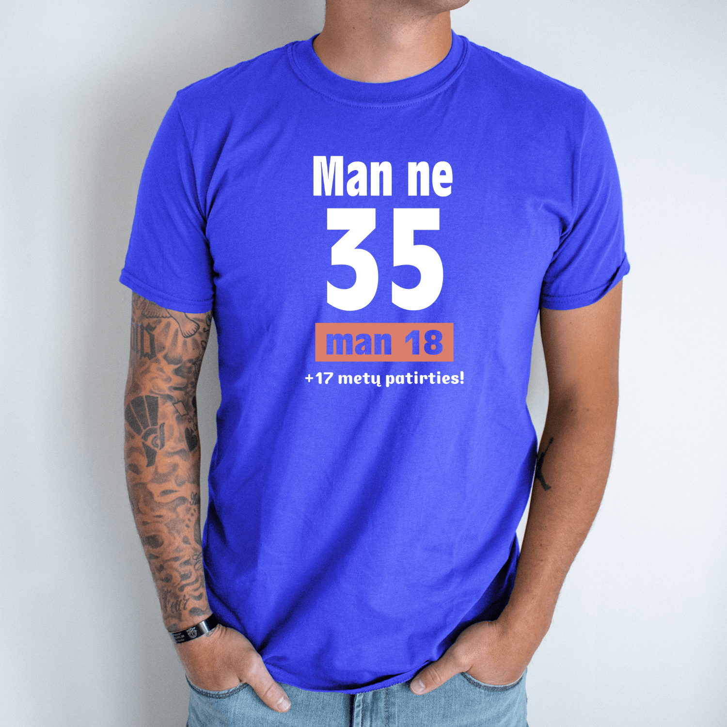 Unisex marškinėliai su spauda „Man ne 35“